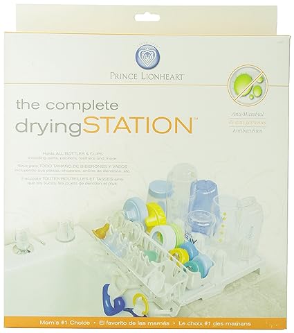 Prince Lionheart's Complete drying station is the ONLY drying organizer on the market that accommodates all sizes of cups, bottles, nipples, and cup parts. It adjusts to fit all sinks and counters and the slanted design allows for thorough drying without puddles of water. Treated with an EPA-approved anti-microbial additive to inhibit the growth of bacteria.