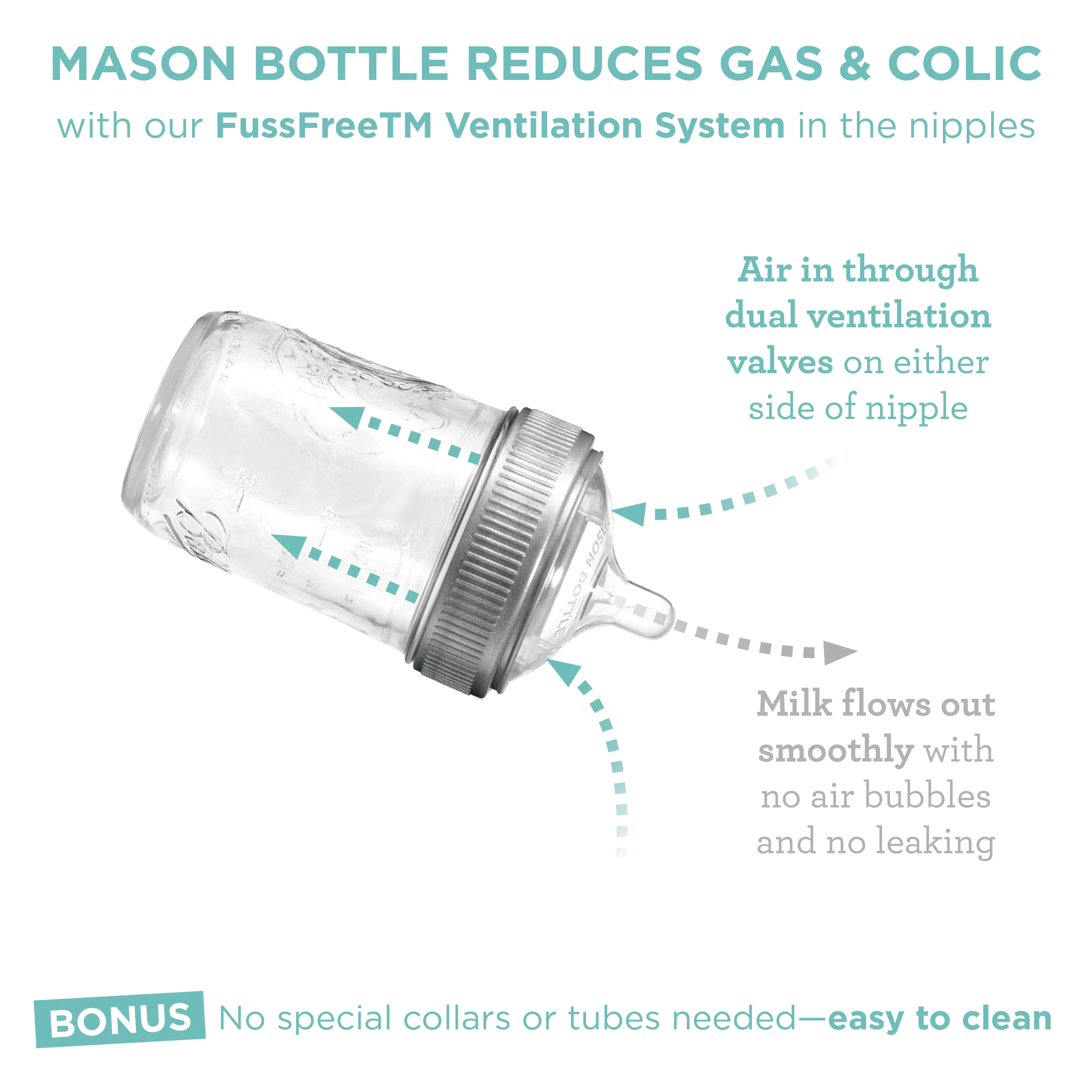 One pack of Mason Bottle Nipples can do the work of a whole baby bottle system if you’ve already got jars at home, helping you save space, save money, and save the planet.