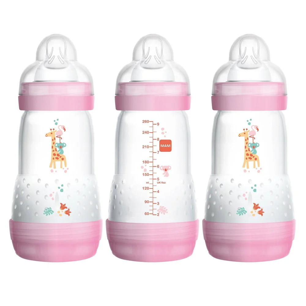 MAM Easy Active, Anti Colic Matte Bottle, 9oz Girl 3 Pack