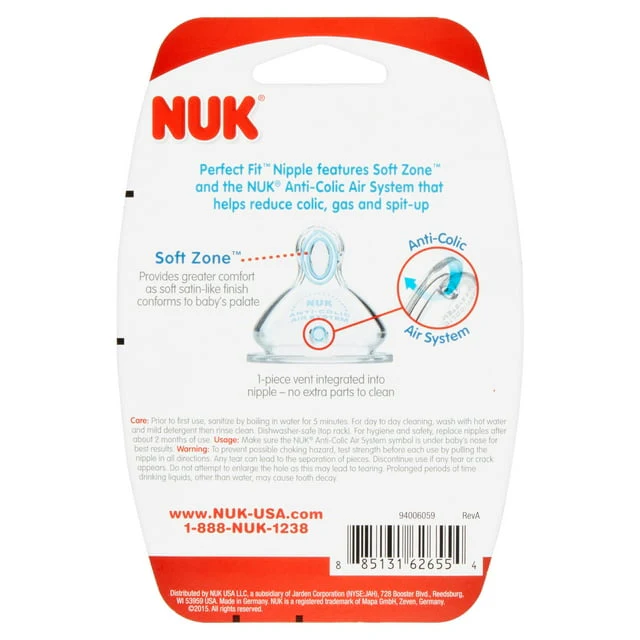 NUK Perfect Fit Slow Flow Silicone Nipples 0m+, 2 count