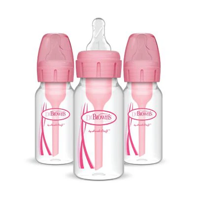 Dr. Browns Natural Flow Anti-Colic Baby Bottles, Pink, 4oz, 3 Pack