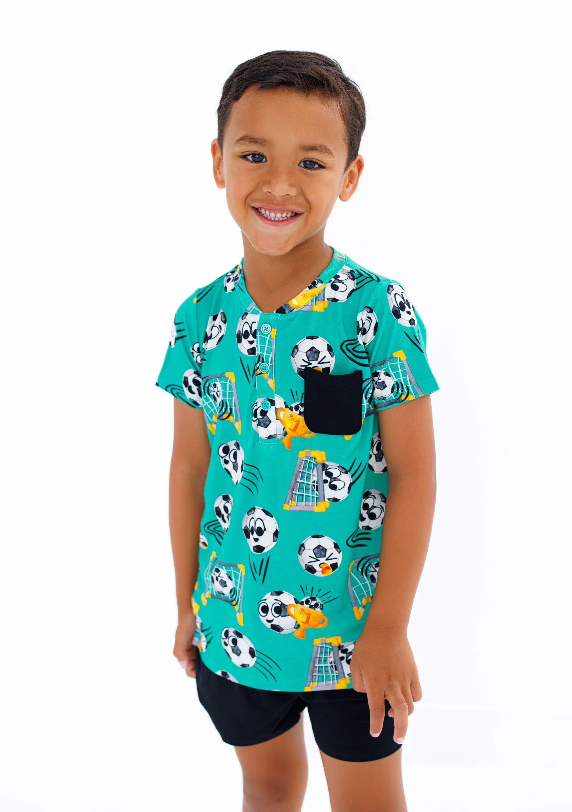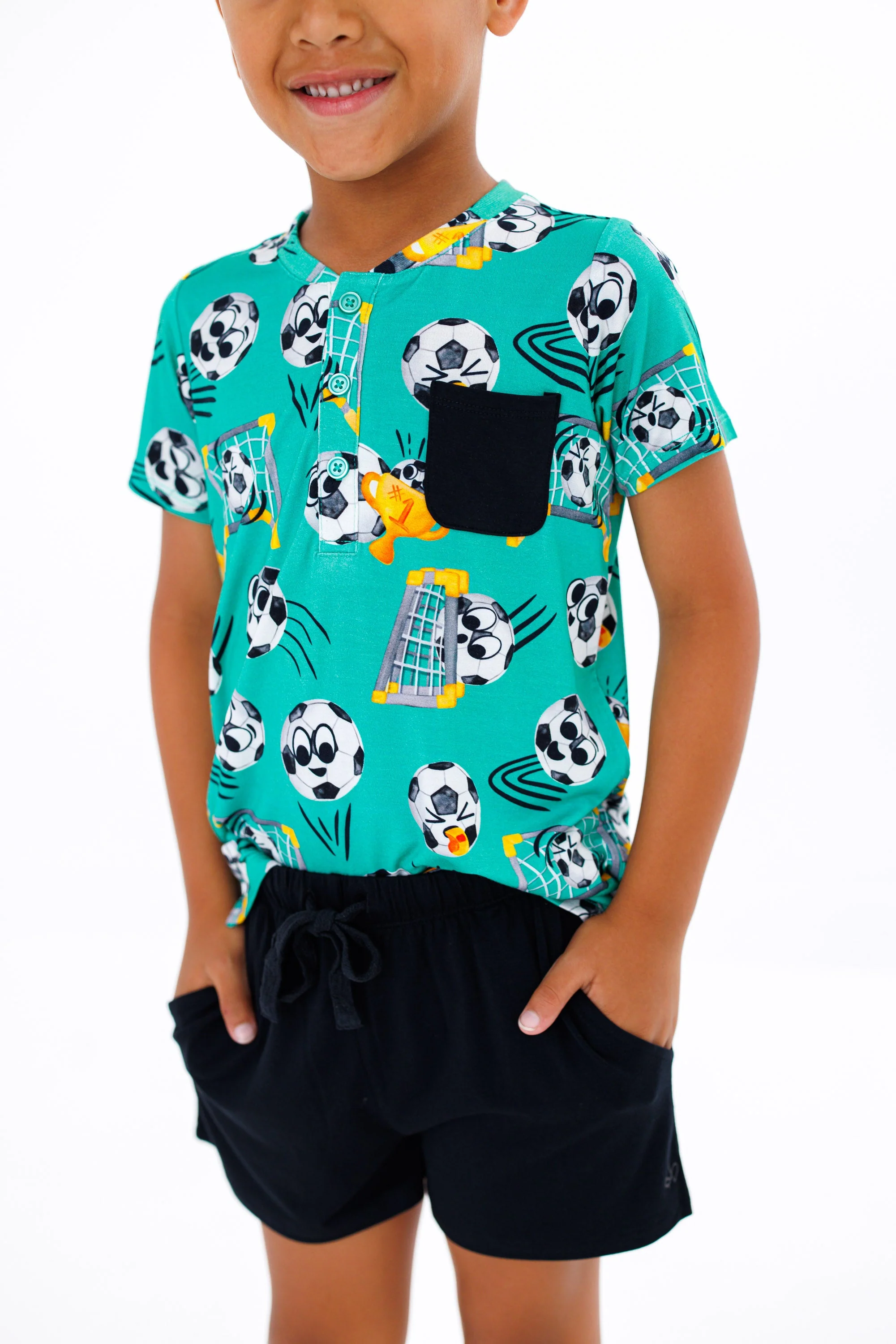 The perfect summer daywear essentials for your little one! The added pocket is the most adorable touch. Lightweight and breathable viscose from bamboo means this shirt and short set is great for wearing together or pairing with other pieces to make the cutest outfit of the day!