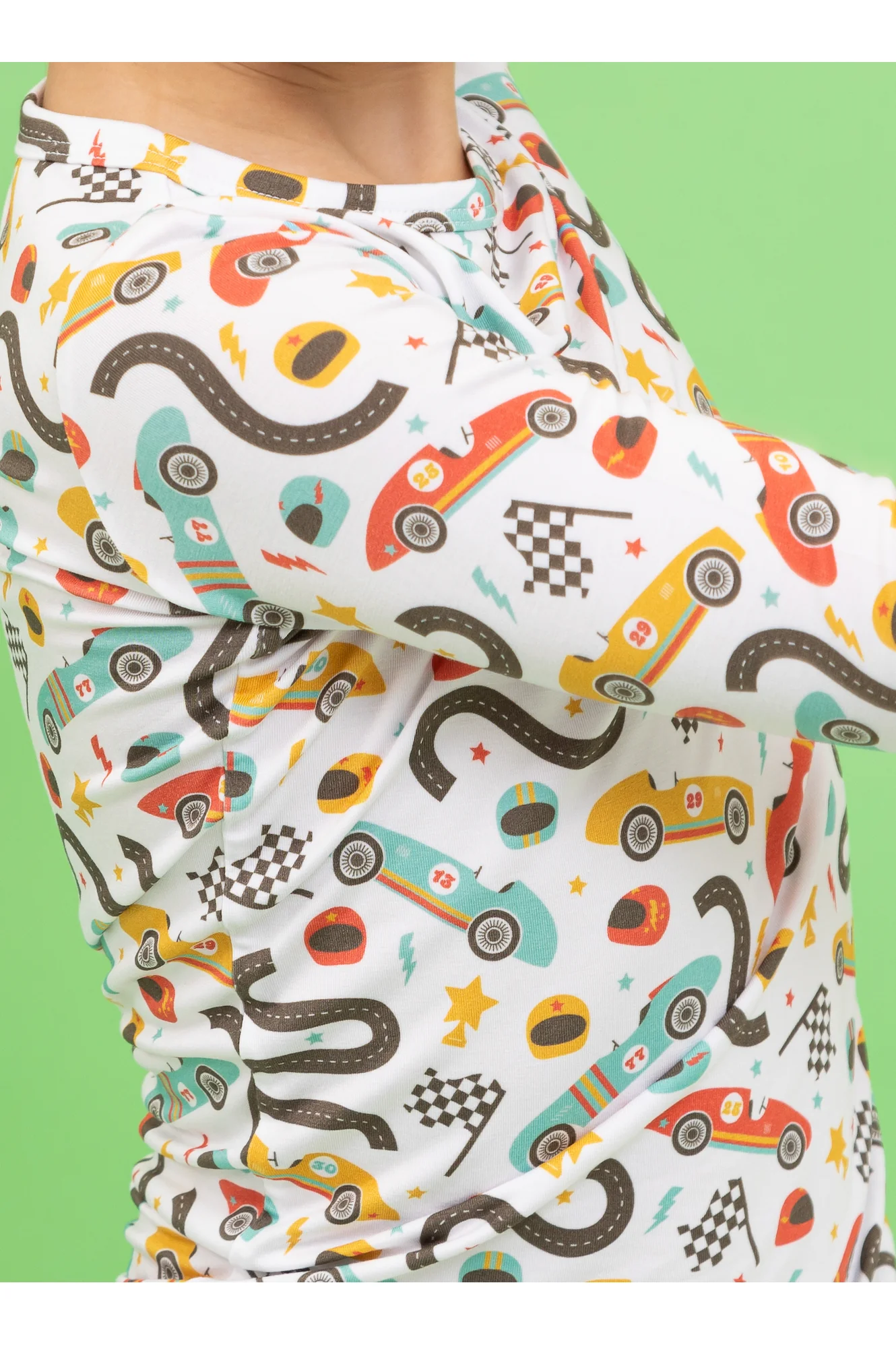 Made from the highest quality, extra soft bamboo viscose fabric, our baby pajamas and kid's pajamas are a favorite! Our bamboo pajamas are made with our signature buttery soft bamboo/spandex blend that has the perfect amount of stretch and softness. Plus, we make our fabric slightly heavier weight to make our pieces last. Our fabric will also hold its shape, color, and quality wash after wash.