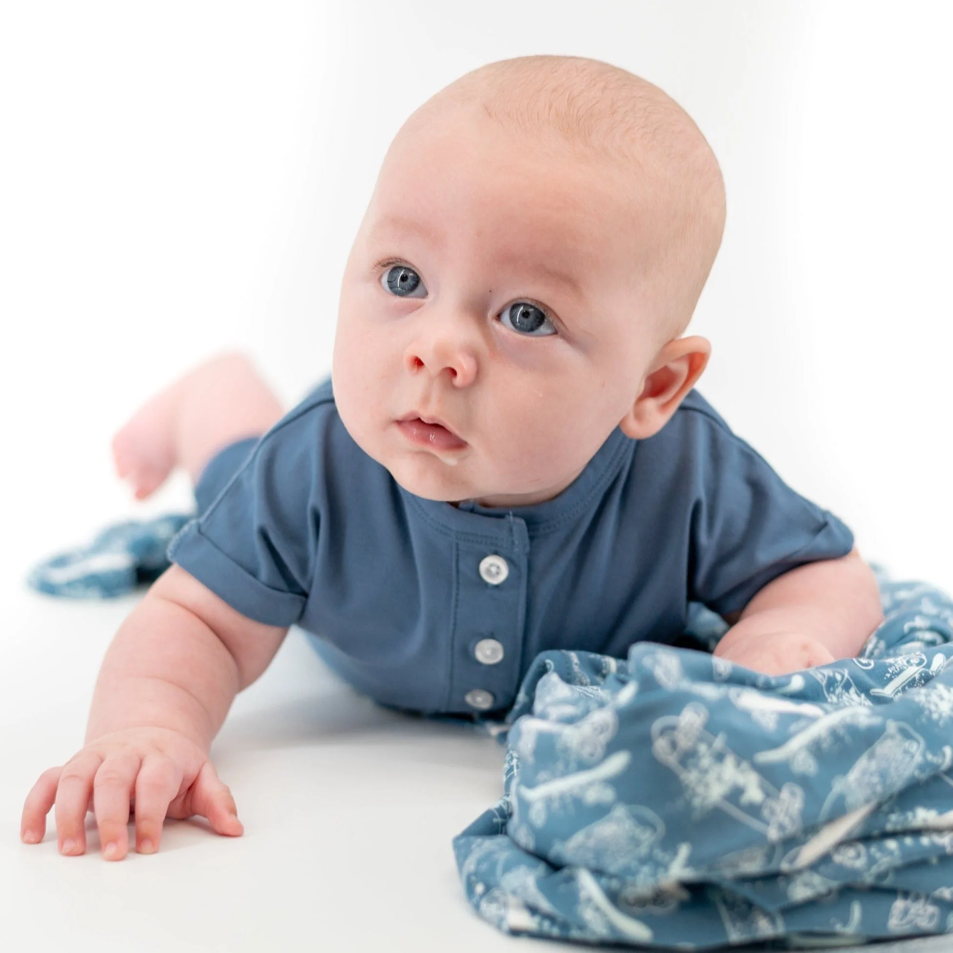 This hip one-piece romper is styled like a t-shirt and looks oh so smart on those hot summer days.