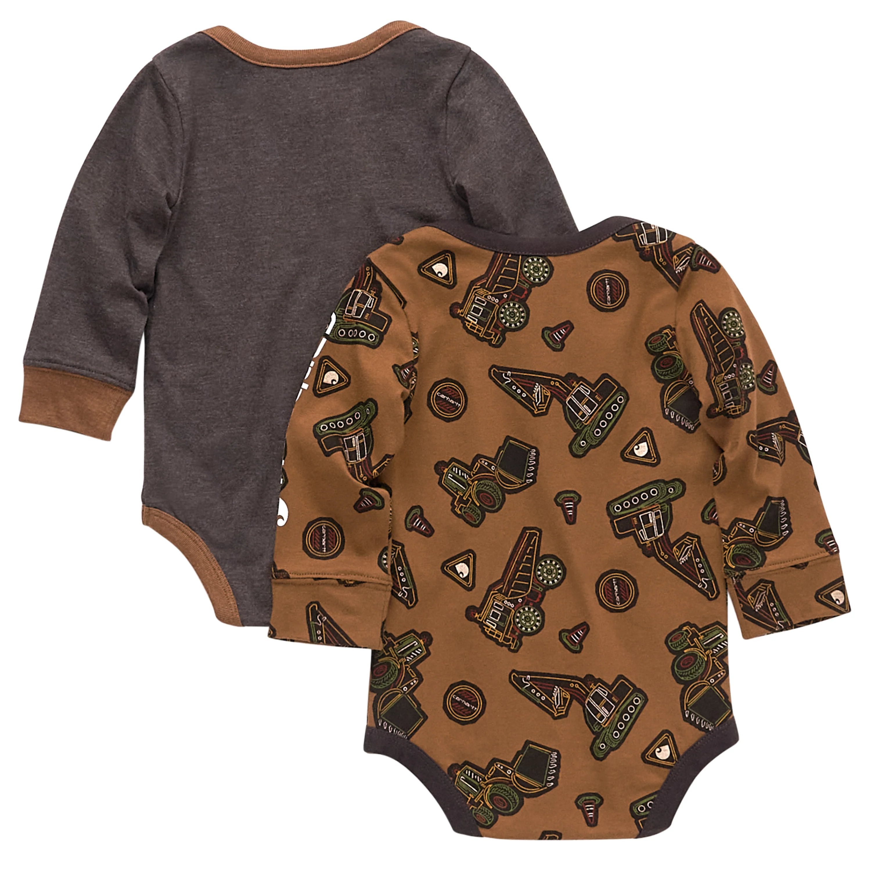 Being a baby is hard work, so he needs some hardworking Carhartt clothes that can hold up. This baby boys' two-pack includes a pair of legless, long-sleeve bodysuits that he can play in and nap in. Crotch snaps and lapped shoulders make for easy changing.