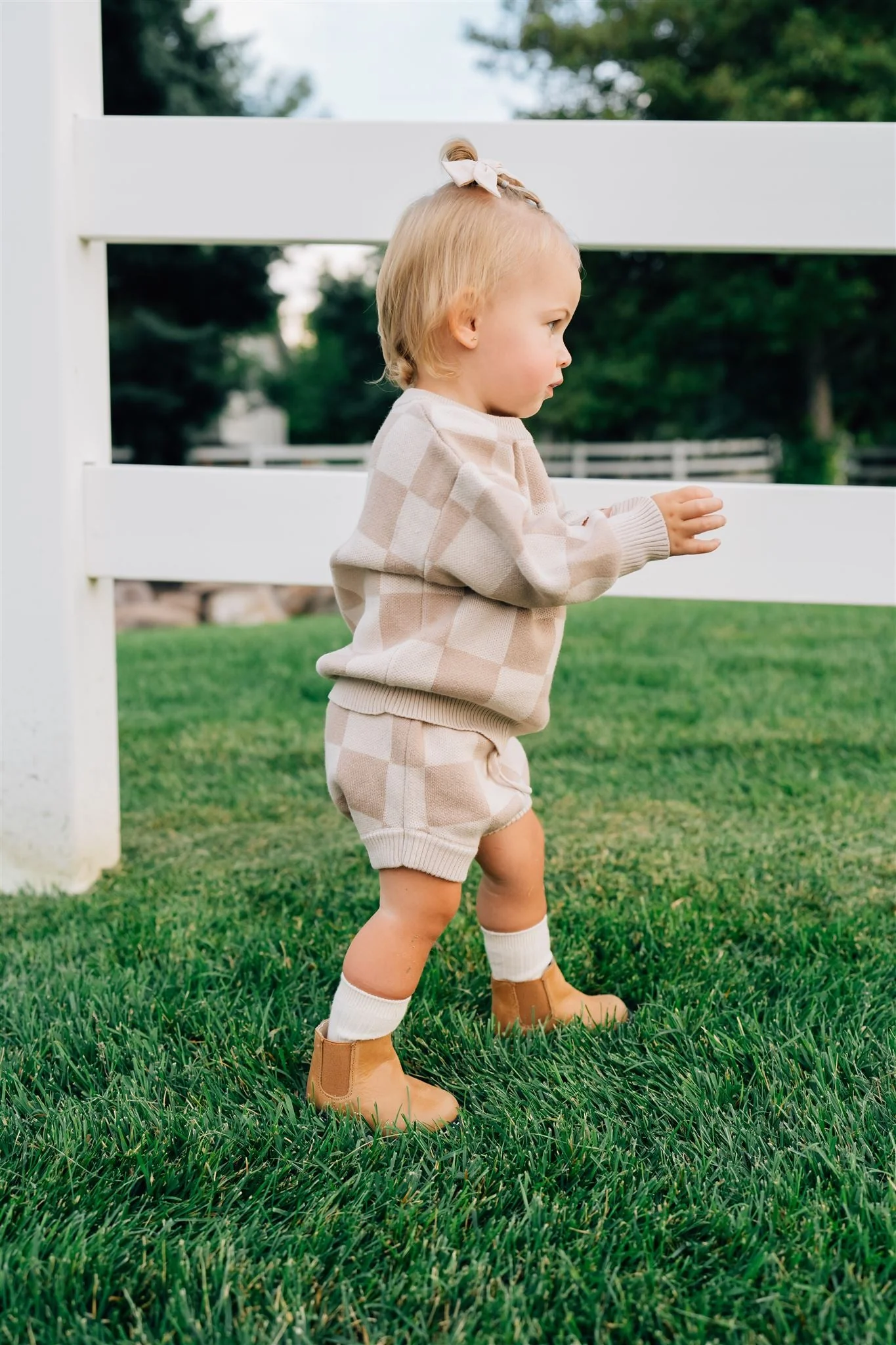 Introduce comfort and style to your little one��s wardrobe with our knit bloomers, available in sizes from 0-3 months to 2T. These adorable bloomers are crafted from soft, breathable knit fabric, offering both a charming look and all-day comfort. Pair them with our matching sweaters!