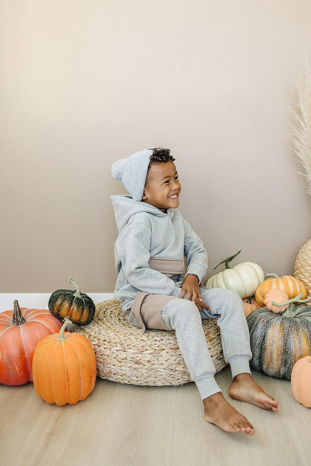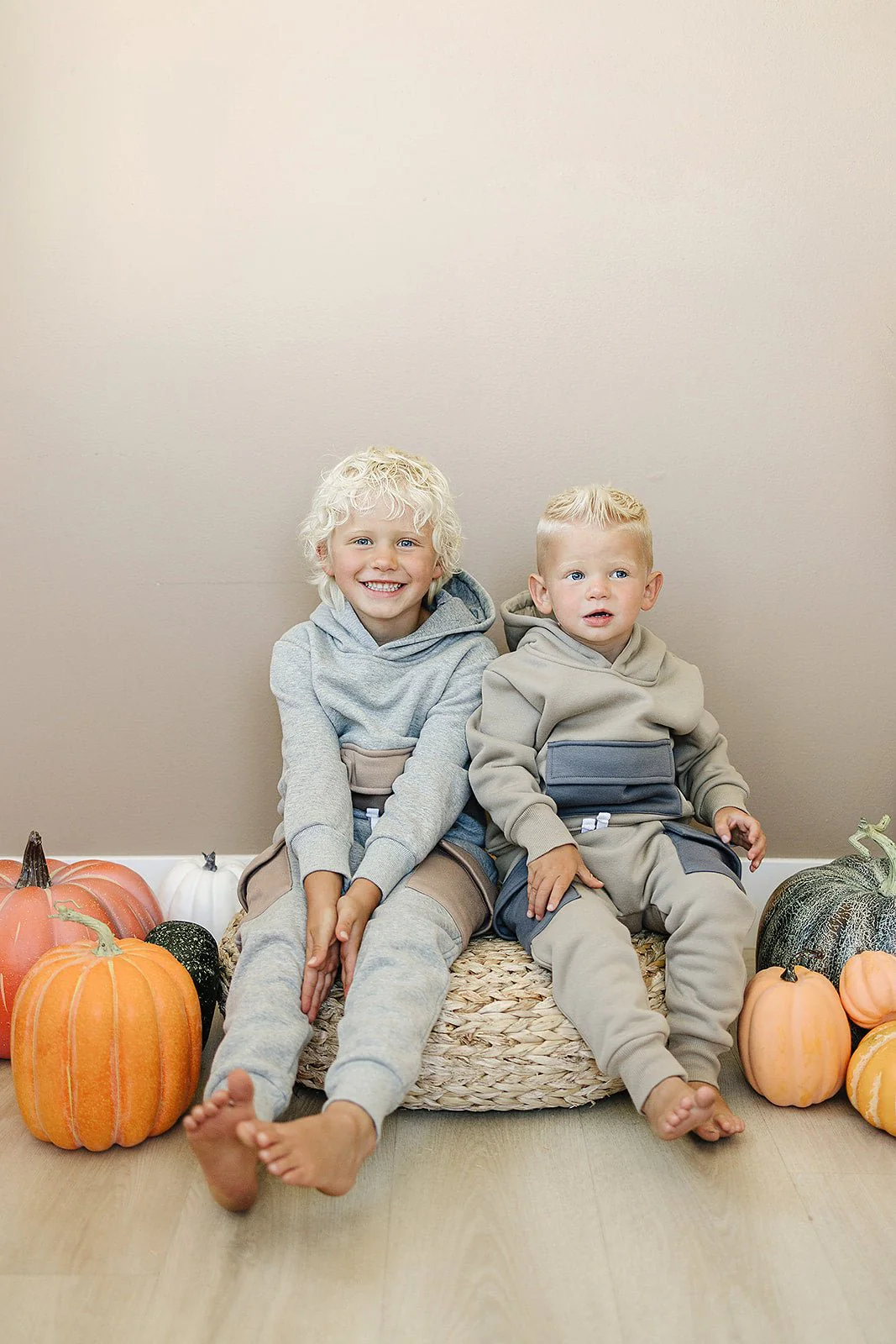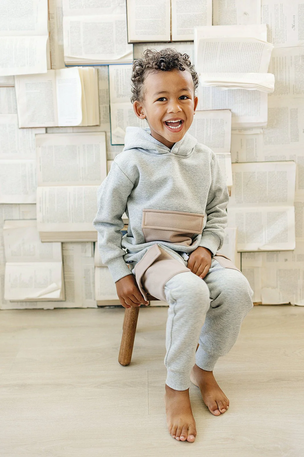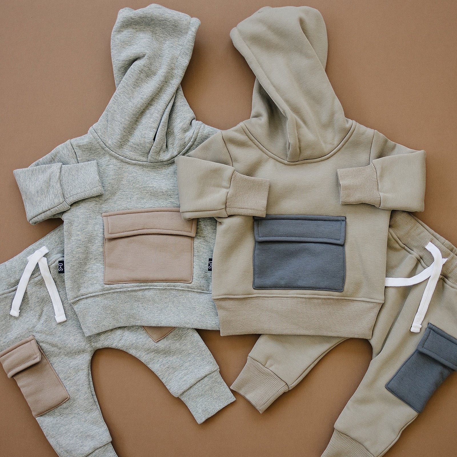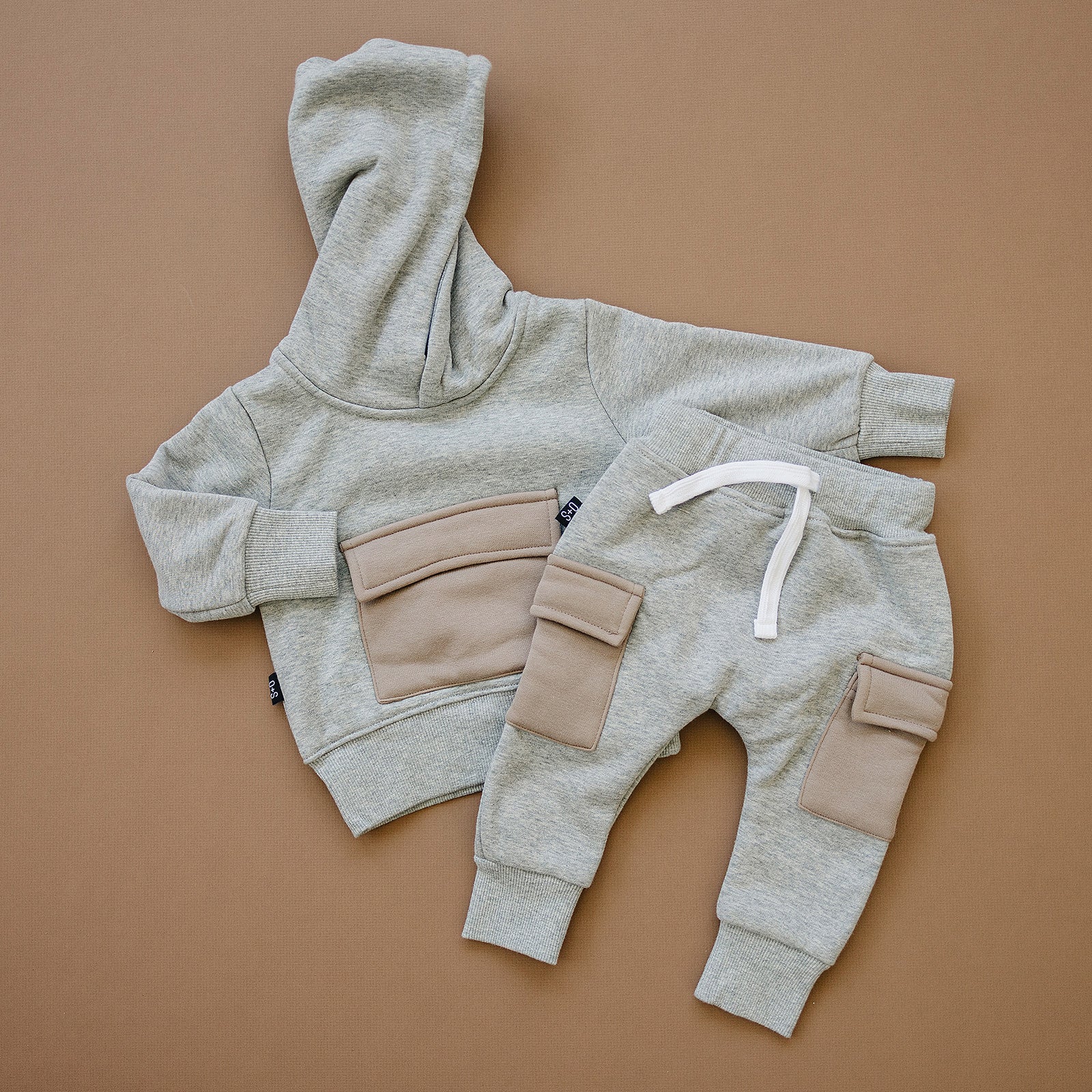 Stay cozy and stylish with our Collins Jogger Set. This super warm set is perfect for any occasion and features contrasting cargo pockets for added style. The elastic waistband and drawstring guarantee a perfect fit every time. Available in subtle neutral colors your little one will love.