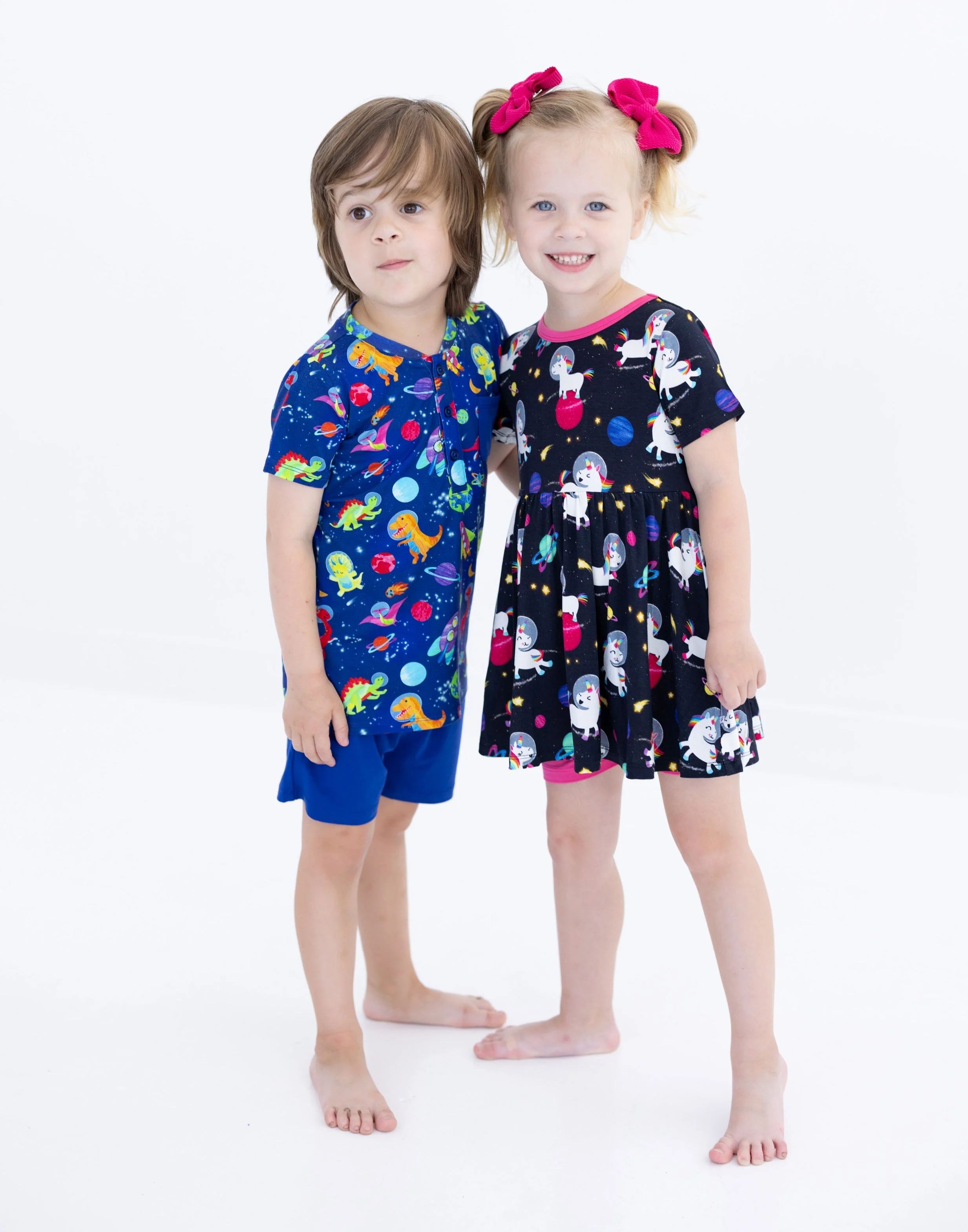 The perfect summer daywear essentials for your little one! The added pocket is the most adorable touch. Lightweight and breathable viscose from bamboo means this shirt and short set is great for wearing together or pairing with other pieces to make the cutest outfit of the day!�