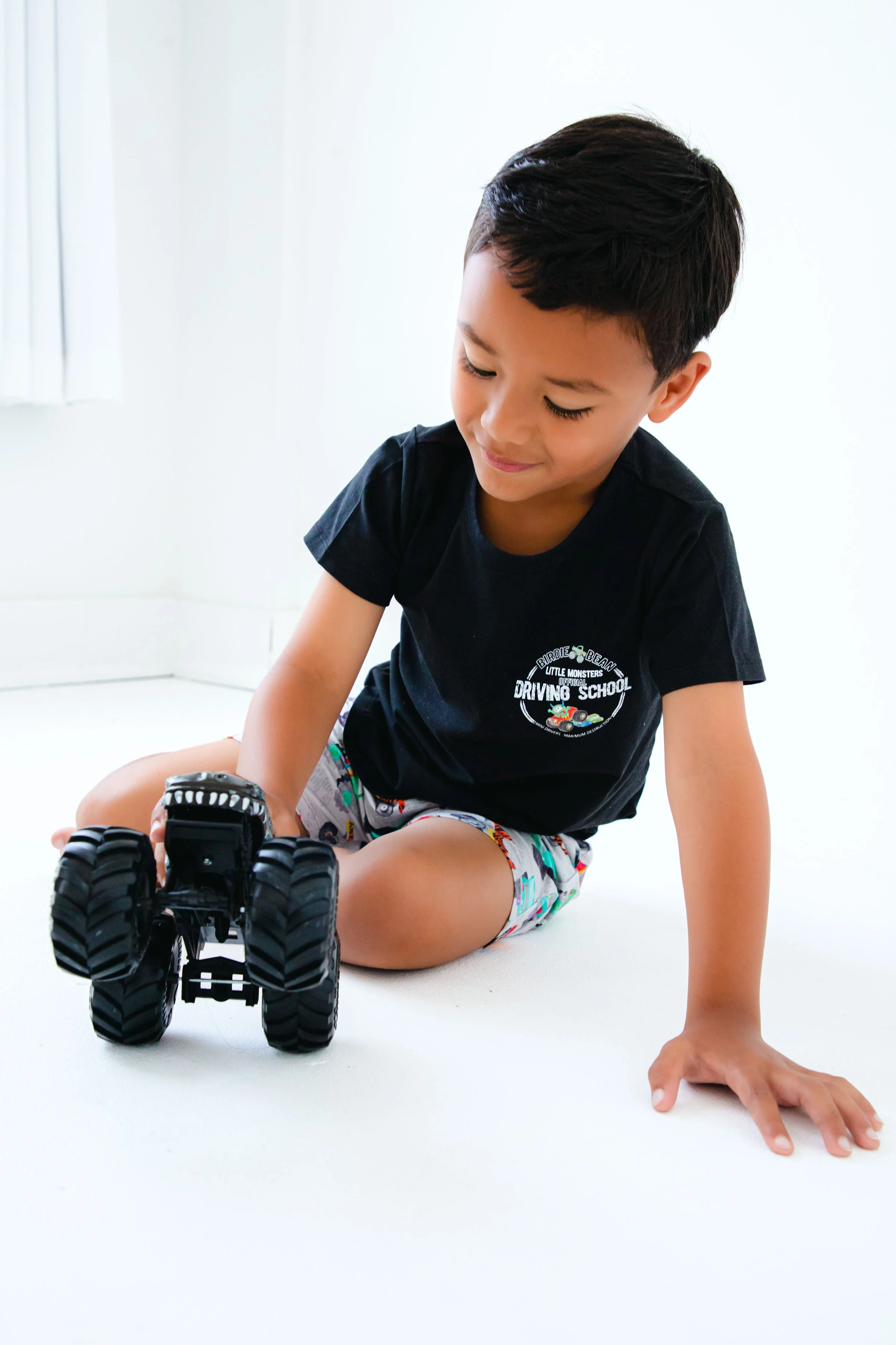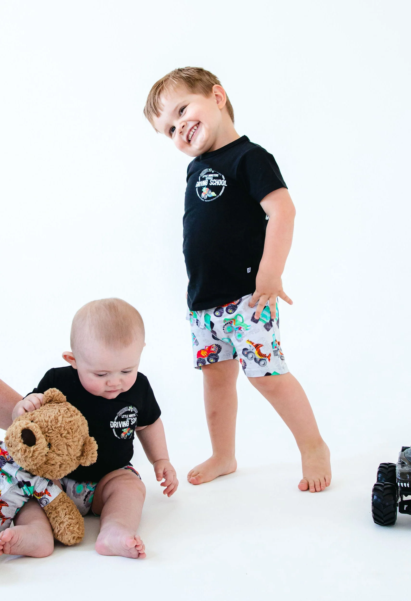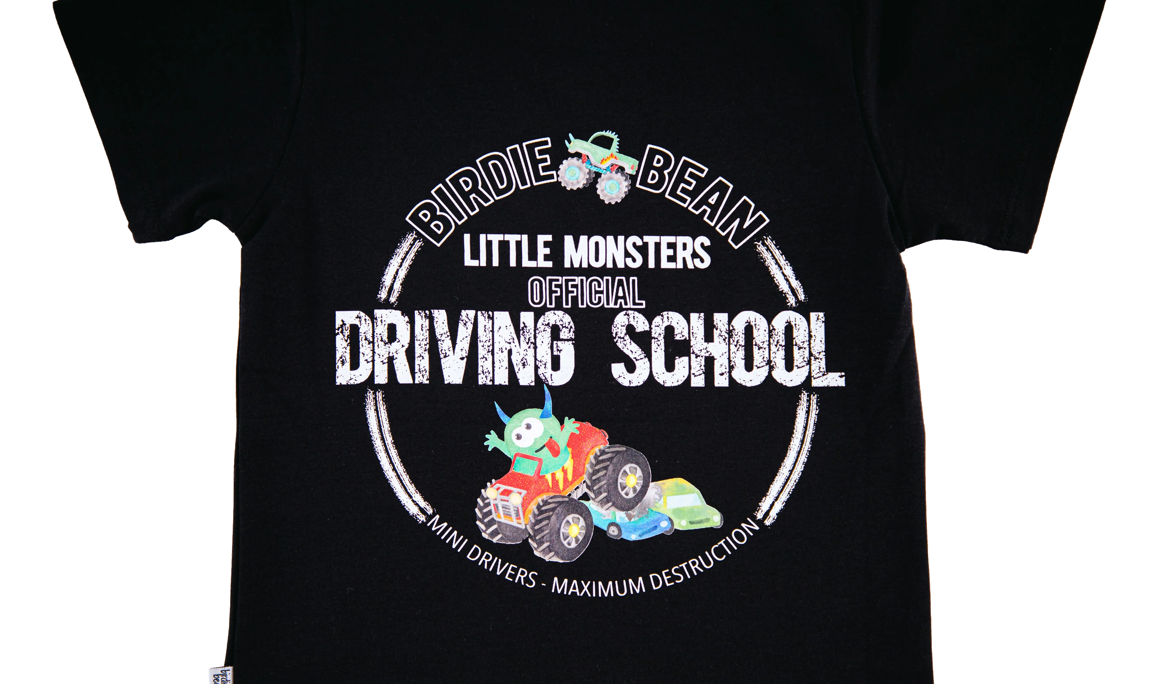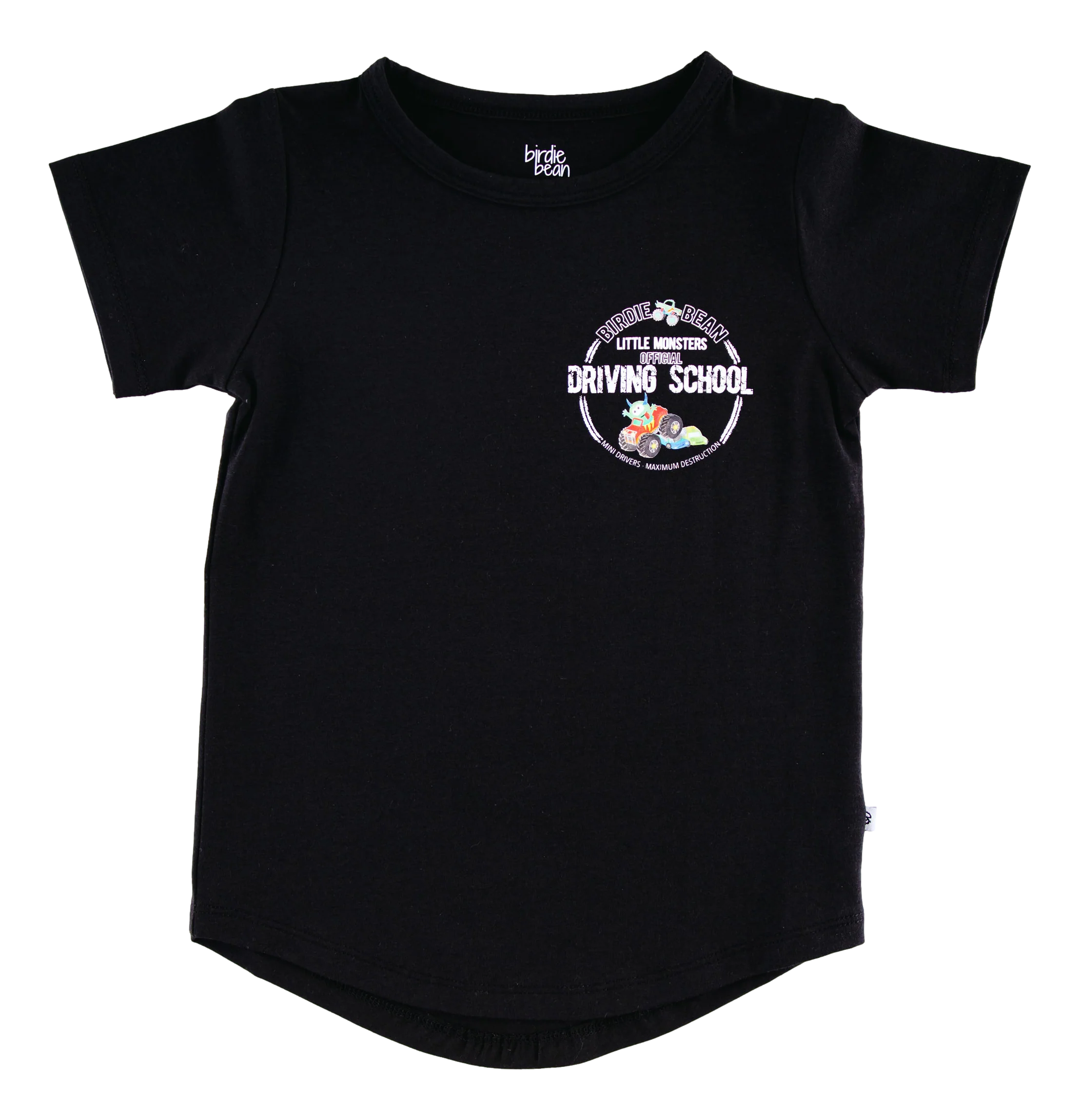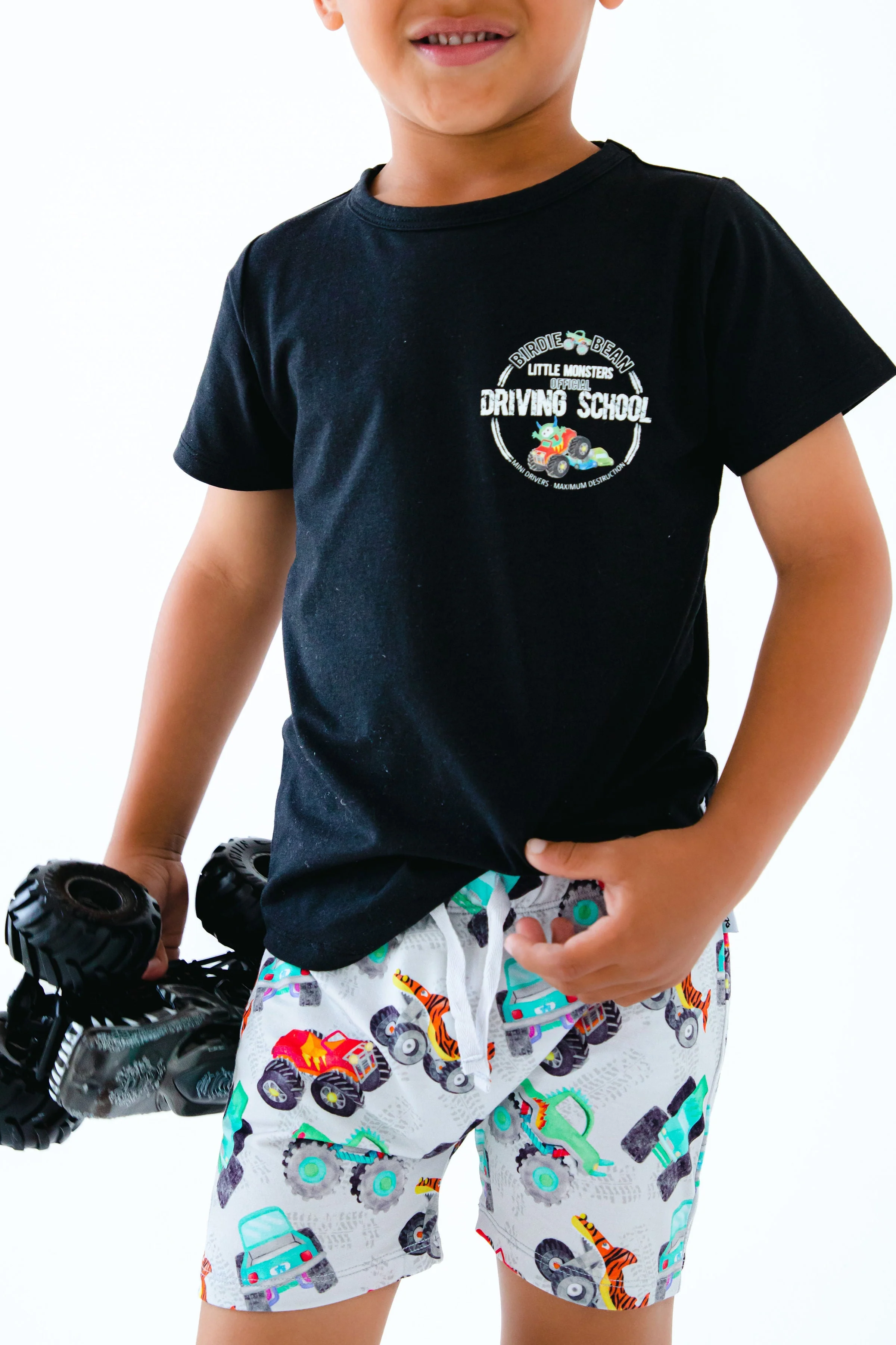 Mini drivers, maximum destruction! Your little monster truck enthusiast will love this graphic tee. The adorable yet fun design paired with the irresistible softness of the viscose from bamboo, spandex, and cotton blend, makes this the perfect t-shirt for your little truck driver-in-training!