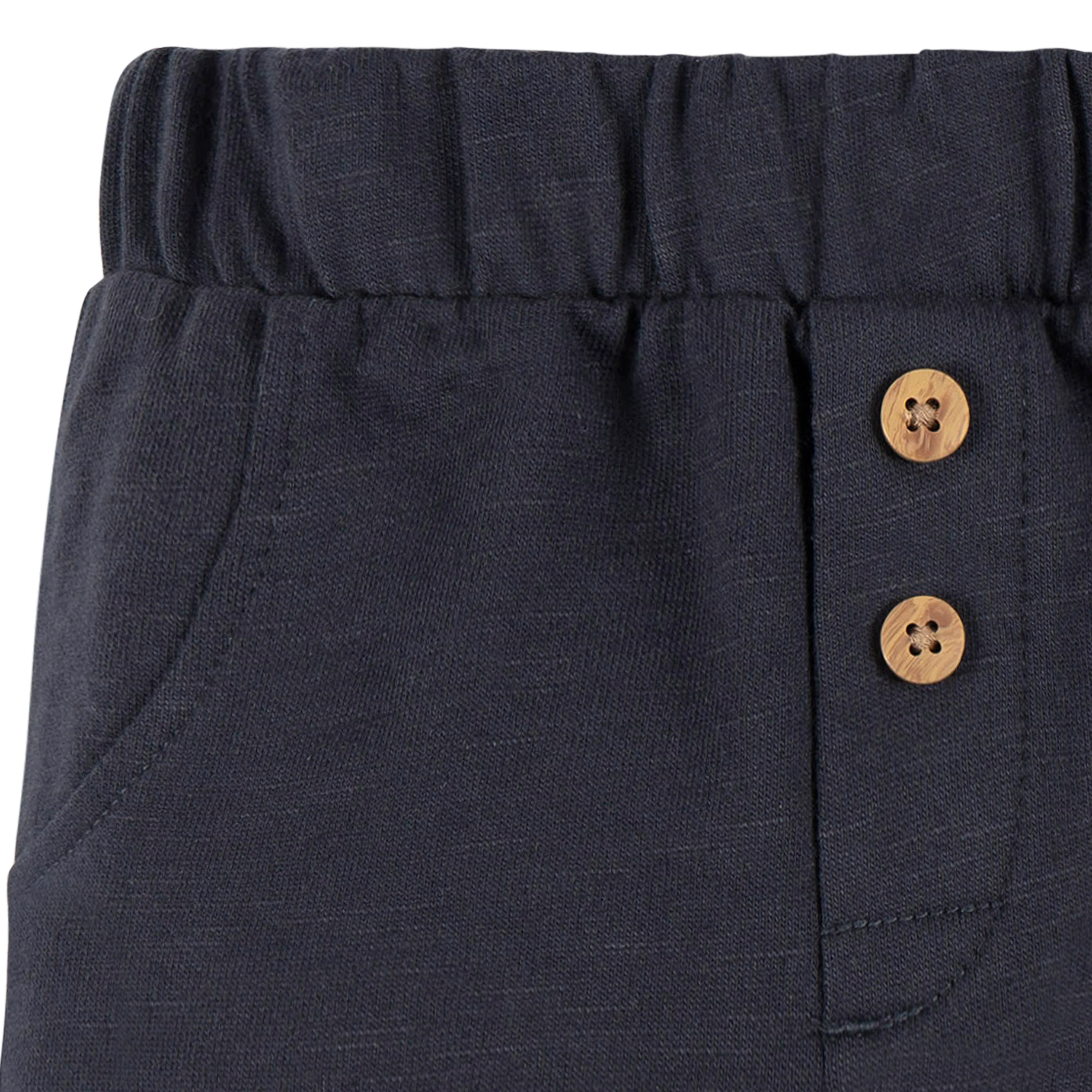 Our cozy and cute baby boy outfit, crafted from soft cotton, is the perfect fit for your little one's everyday adventures. The long sleeve shirt and jogger pants are ideal for cooler weather, providing warmth and comfort. A stretchy waistband on the pants provides a secure fit for play, while cinched ankles add to the cozy feel. Easy to layer, it's a versatile option for any outing. Our essentials have been independently certified with STANDARD 100 by OEKO-TEX® so that you don’t have to worry about harmful substances in your baby’s wardrobe.
