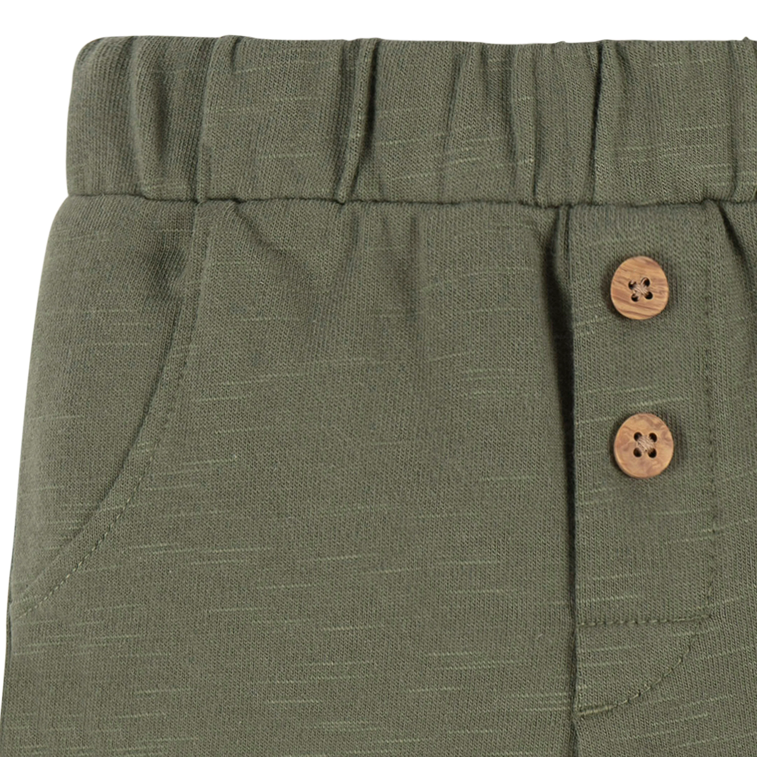 Our cozy and cute baby boy outfit, crafted from soft cotton, is the perfect fit for your little one's everyday adventures. The long sleeve shirt and jogger pants are ideal for cooler weather, providing warmth and comfort. A stretchy waistband on the pants provides a secure fit for play, while cinched ankles add to the cozy feel. Easy to layer, it's a versatile option for any outing. Our essentials have been independently certified with STANDARD 100 by OEKO-TEX® so that you don’t have to worry about harmful substances in your baby’s wardrobe.