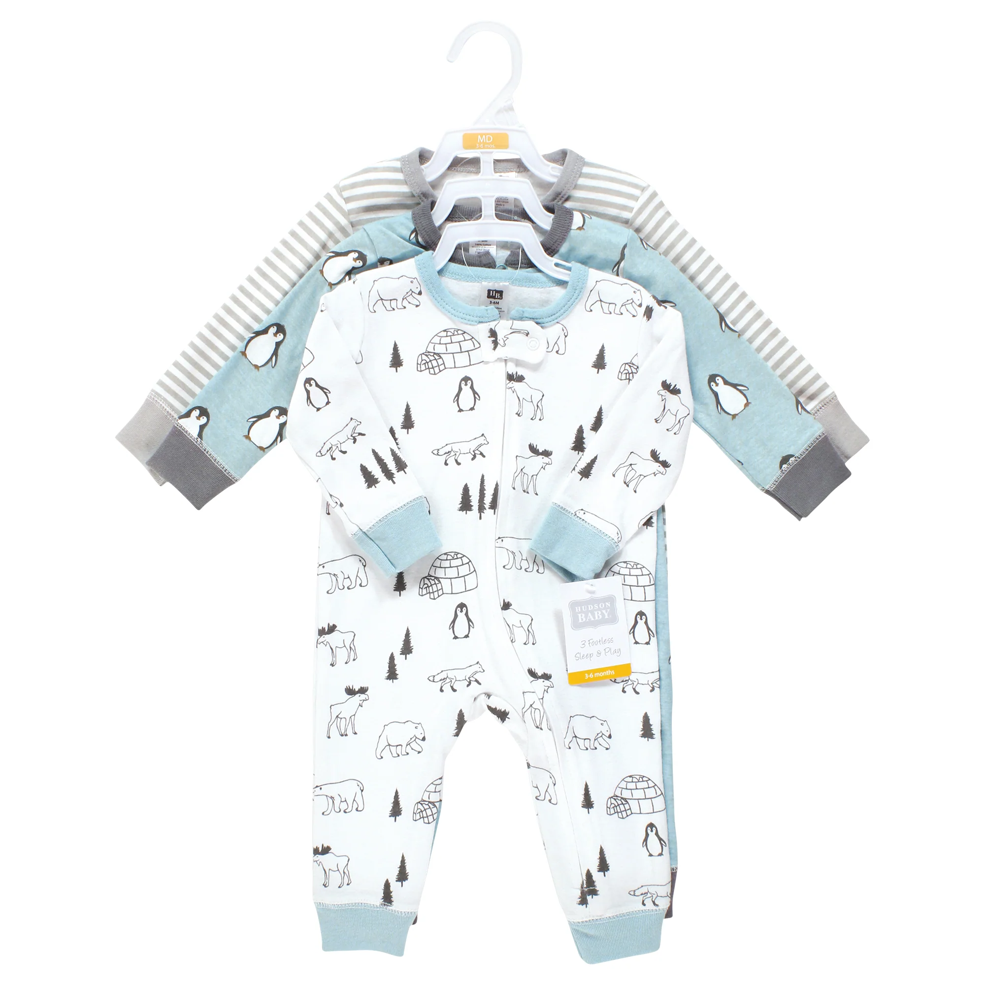 Hudson Baby Boy Cotton Sleep and Play, Penguin 3-Pack