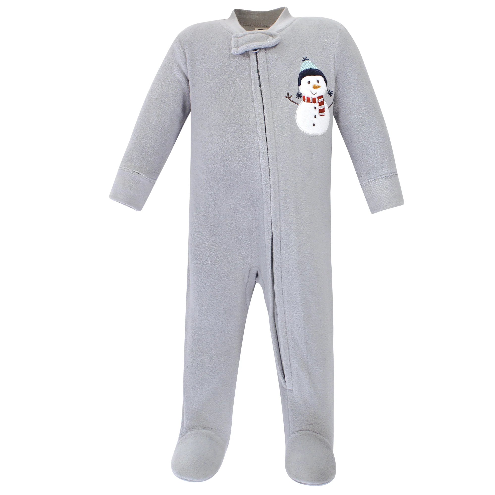 Your baby will be ready for a nap or for playtime with these adorable Hudson Baby Snowman Sleep N' Plays. This convenient pack of 2 is made of super cozy fleece material in fun prints your little one will love. It features a zip closure with a safety tab.