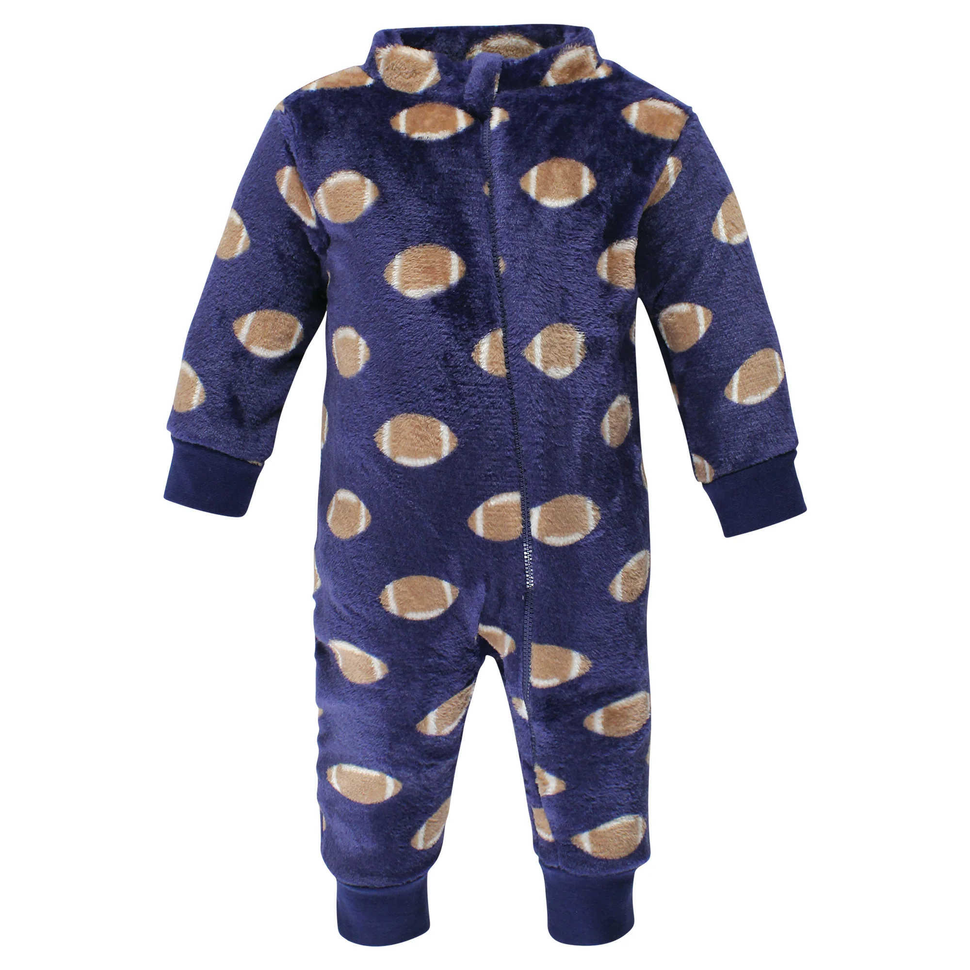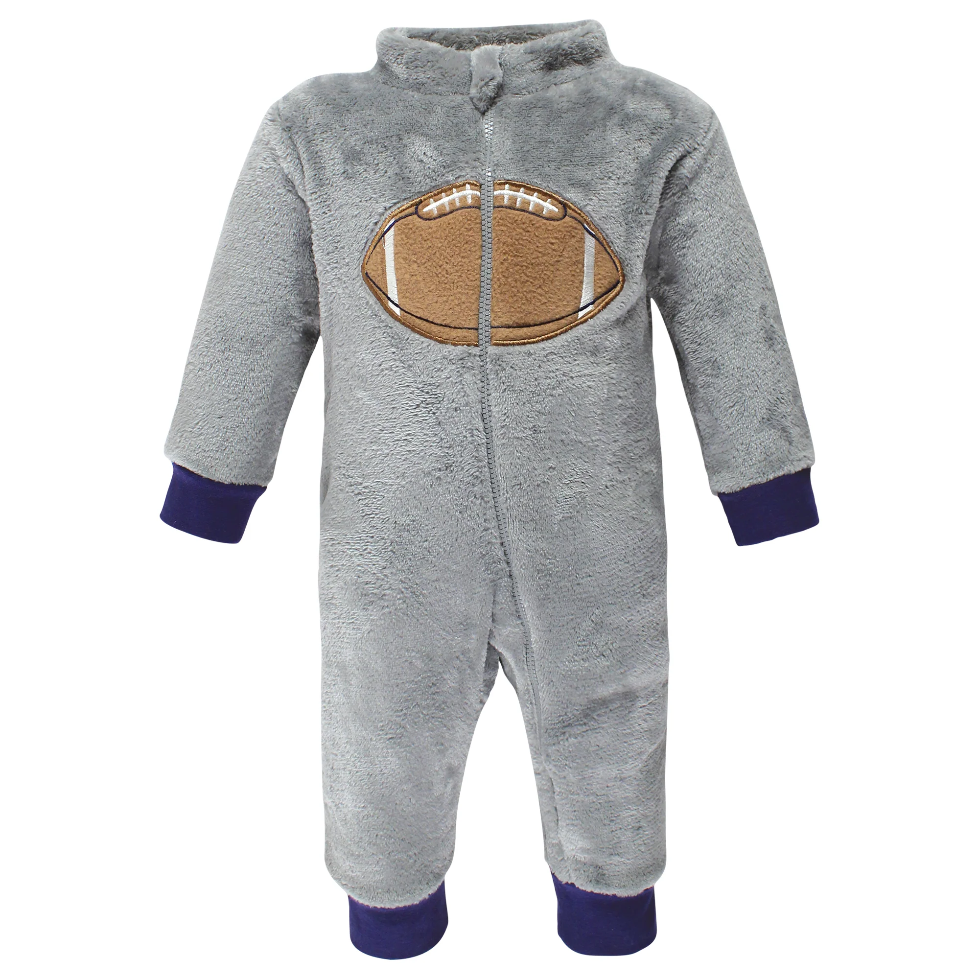 Hudson Baby jumpsuits are perfect for chilly day outings. Our zip up jumpsuits come with an attached hood to keep baby warm and snug. Ribbed cuffs stretch to help stay on baby's hands and ankles. These include an adorable pocket to keep little one's hands extra warm! With snaps on crotch and legs and chest zipper, these suits make for a no fuss, easy dressing experience to get outside.