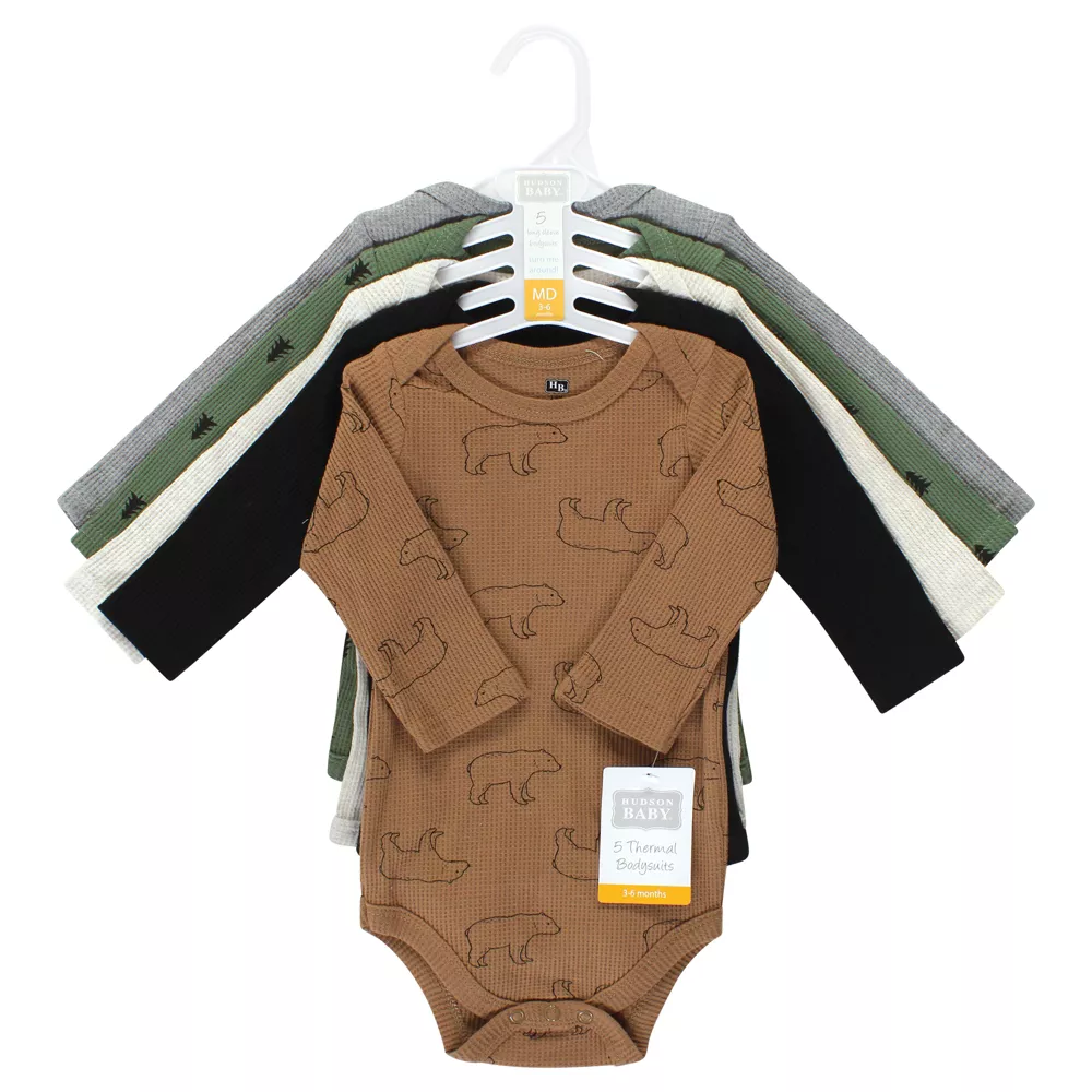 Hudson Baby thermal long-sleeve bodysuits are an essential part of baby's wardrobe. Our bodysuits feature adorable prints, stripes and solids and provide a comfortable base layer that's great for pairing with pants, shorts, or even wearing under outfits. Our bodysuits are comfortable and cozy for all-day, everyday wear for your little one.