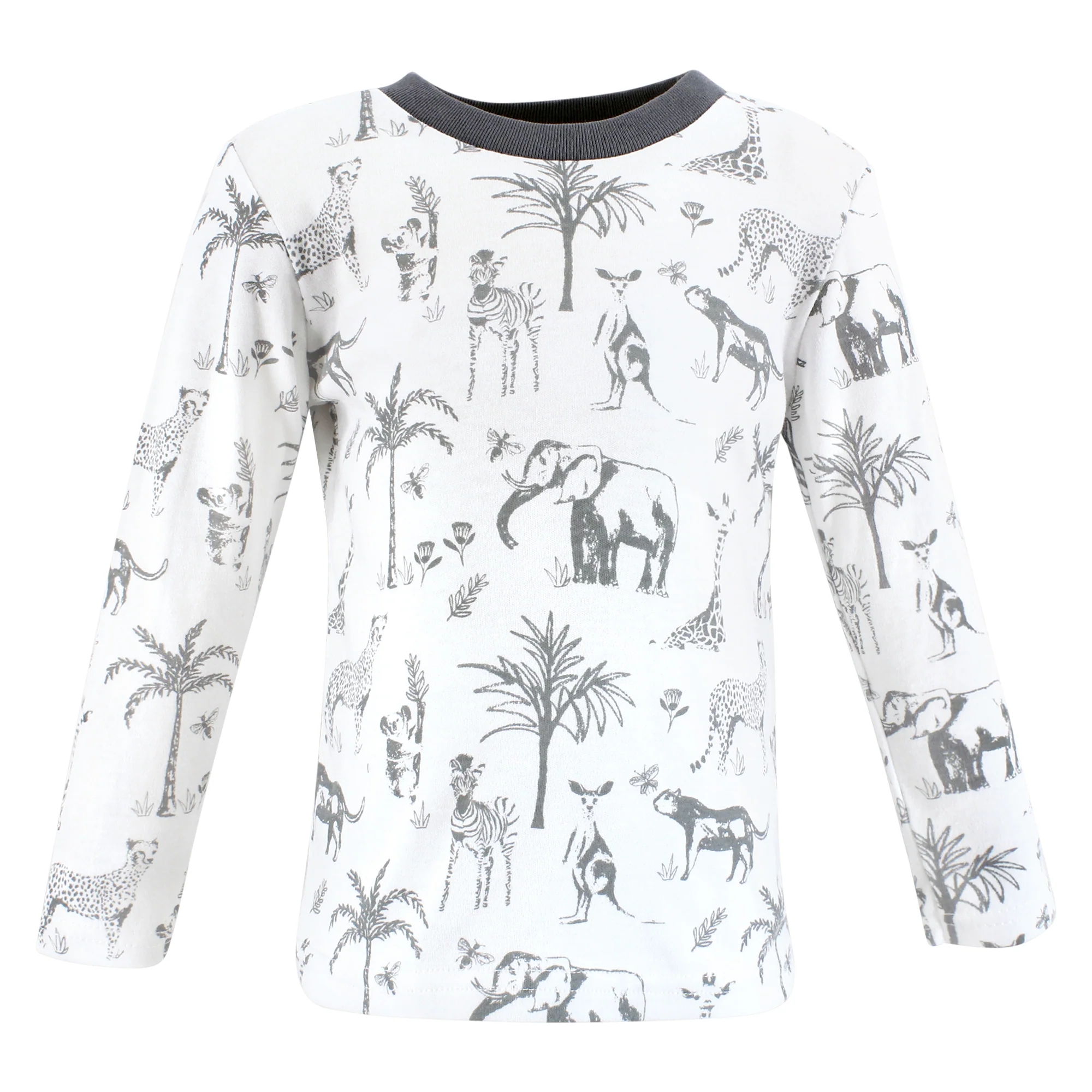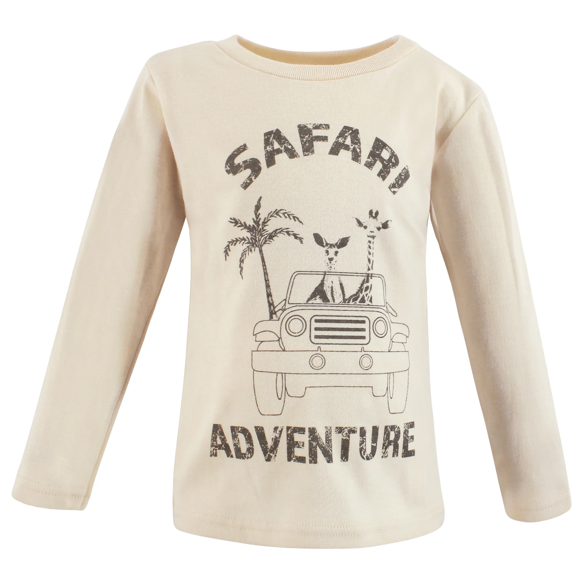 Hudson Baby t-shirts are great everyday tops for your little ones. Featuring fun prints and patterns, our t-shirts are made with comfortable, soft cotton poly fabric that feels wonderful on children's skin. Our sets include five t-shirts so you can mix and match with your child's wardrobe for fun everyday outfits.