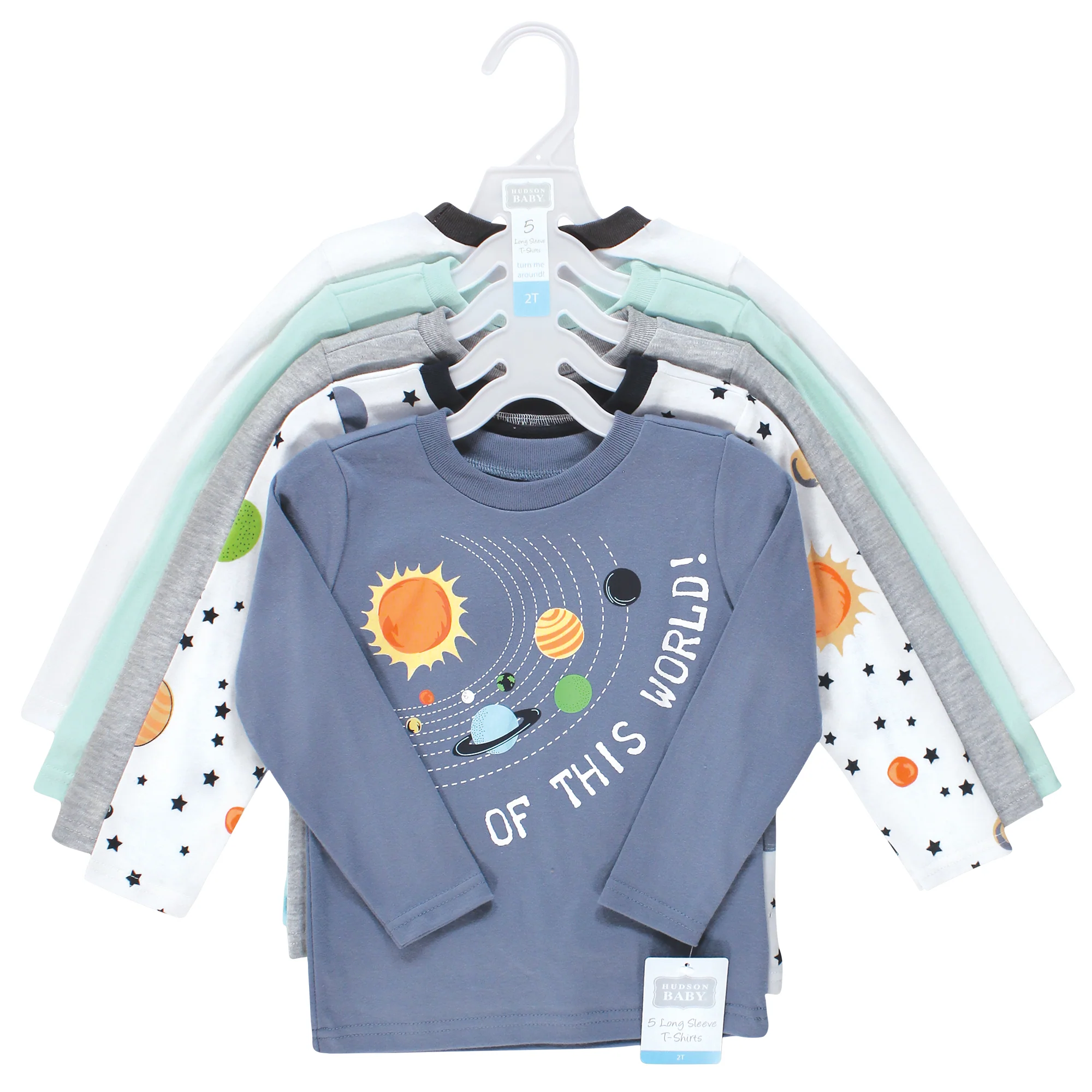 Hudson Baby t-shirts are great everyday tops for your little ones. Featuring fun prints and patterns, our t-shirts are made with comfortable, soft cotton poly fabric that feels wonderful on children's skin. Our sets include five t-shirts so you can mix and match with your child's wardrobe for fun everyday outfits.