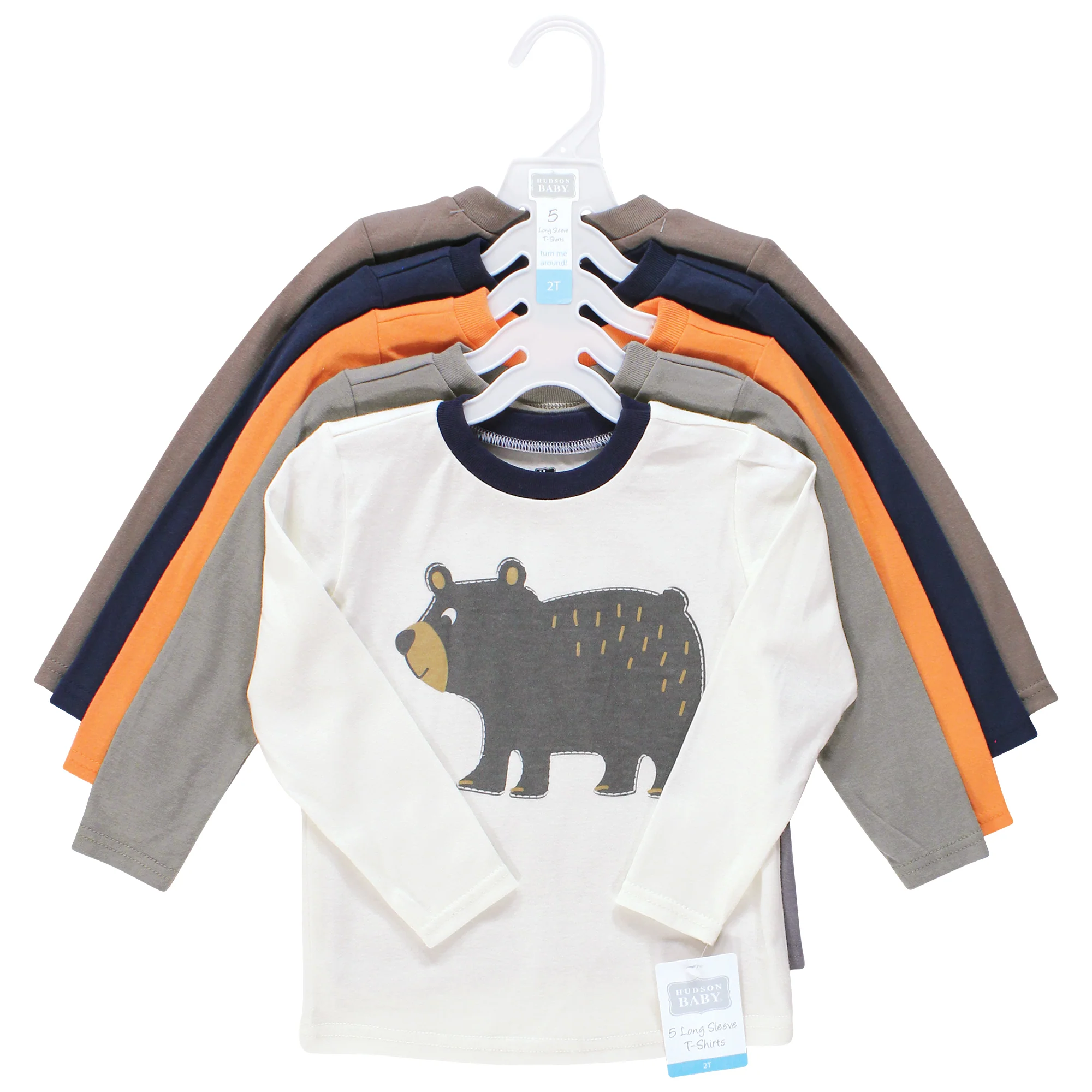 Hudson Baby t-shirts are great everyday tops for your little ones. Featuring fun prints and patterns, our t-shirts are made with comfortable, soft cotton poly fabric that feels wonderful on children's skin. Our sets include five t-shirts so you can mix and match with your child's wardrobe for fun everyday outfits.