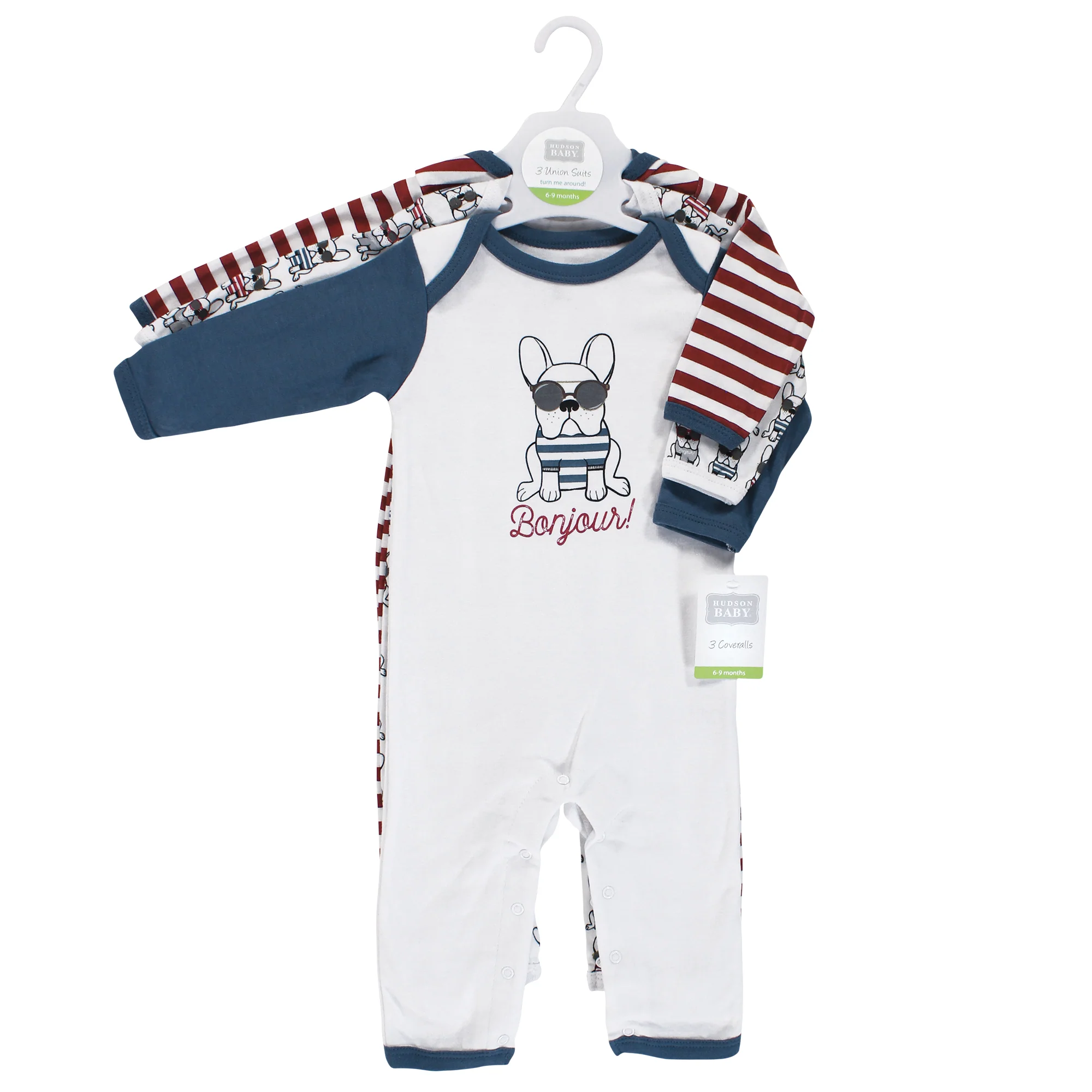 Hudson Baby Infant Boy Cotton Coveralls, French Dog