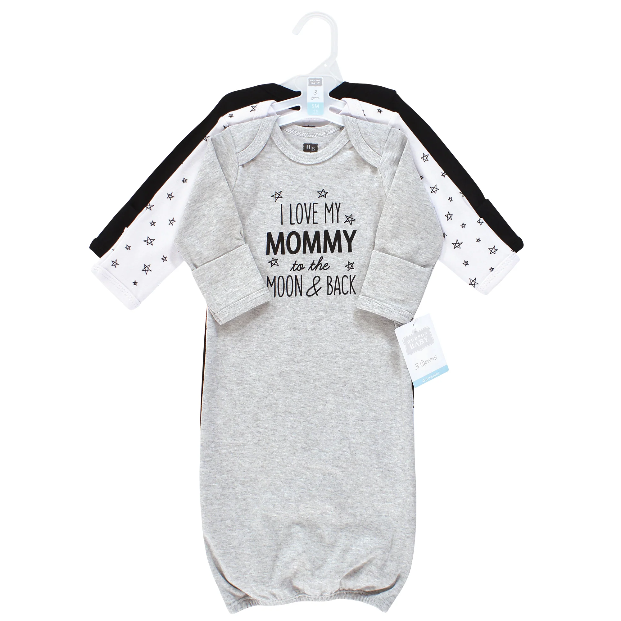 - Includes 3 long sleeve gowns