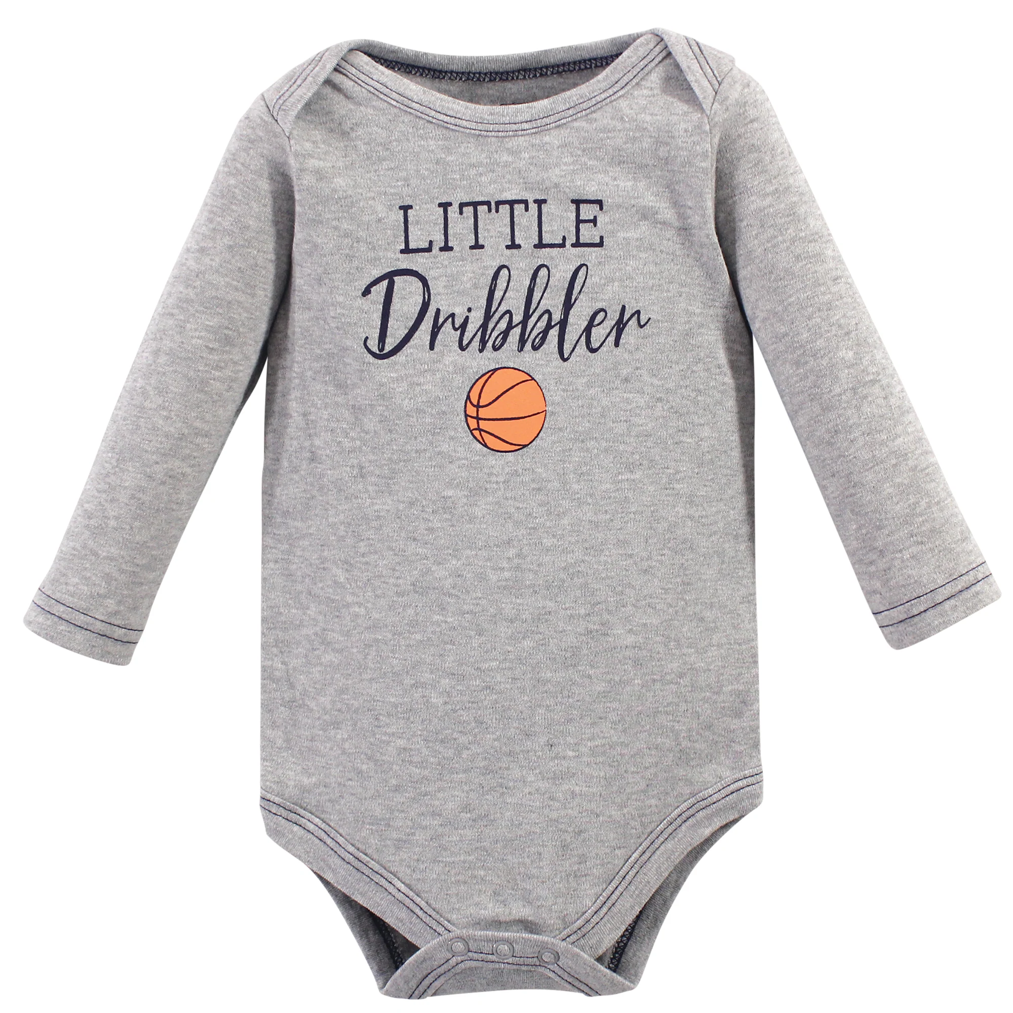 Add variety and style to your little one's wardrobe with these Hudson Baby Basketball Long Sleeve Bodysuits. This convenient pack of 5 features an assortment of prints and colors and is each crafted of 100% lush cotton.