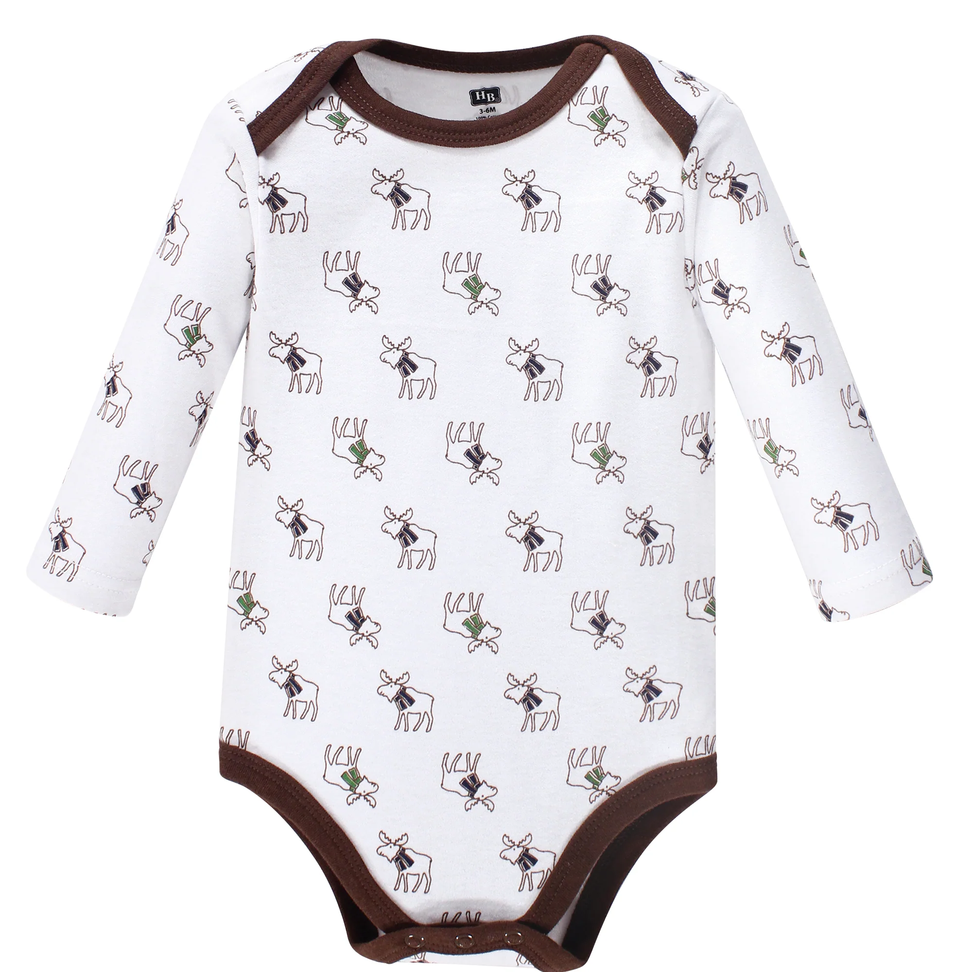 Gift your little one's closet a variety of outfit options with the Moose Long Sleeve Bodysuits by Hudson Baby. Adorned with outdoor patterns and accents, this cozy cotton assortment features 5 long sleeve bodysuits with snaps for easy changes.