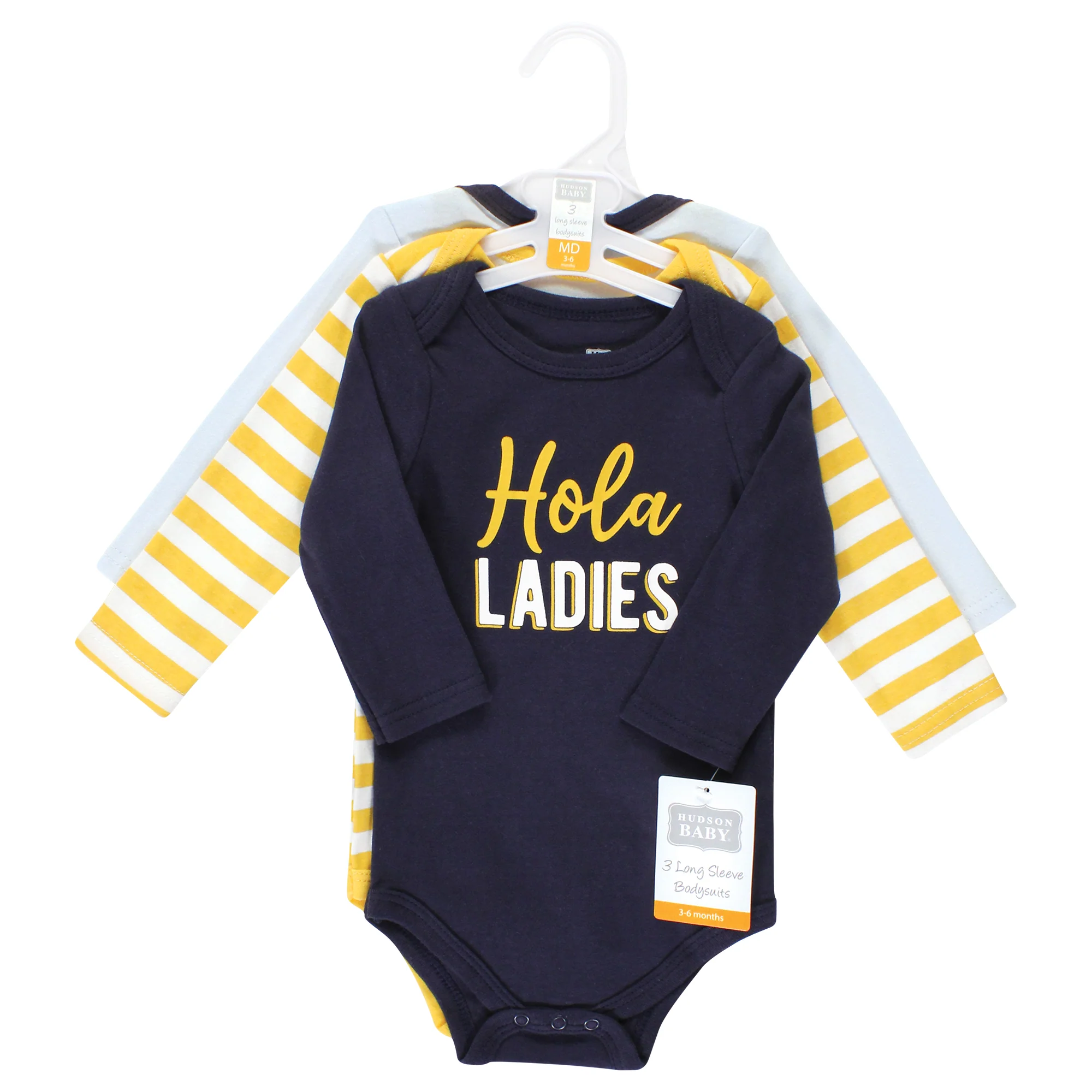Hudson Baby Infant Boy Cotton Long-Sleeve Bodysuits, Hola Ladies 3-Pack