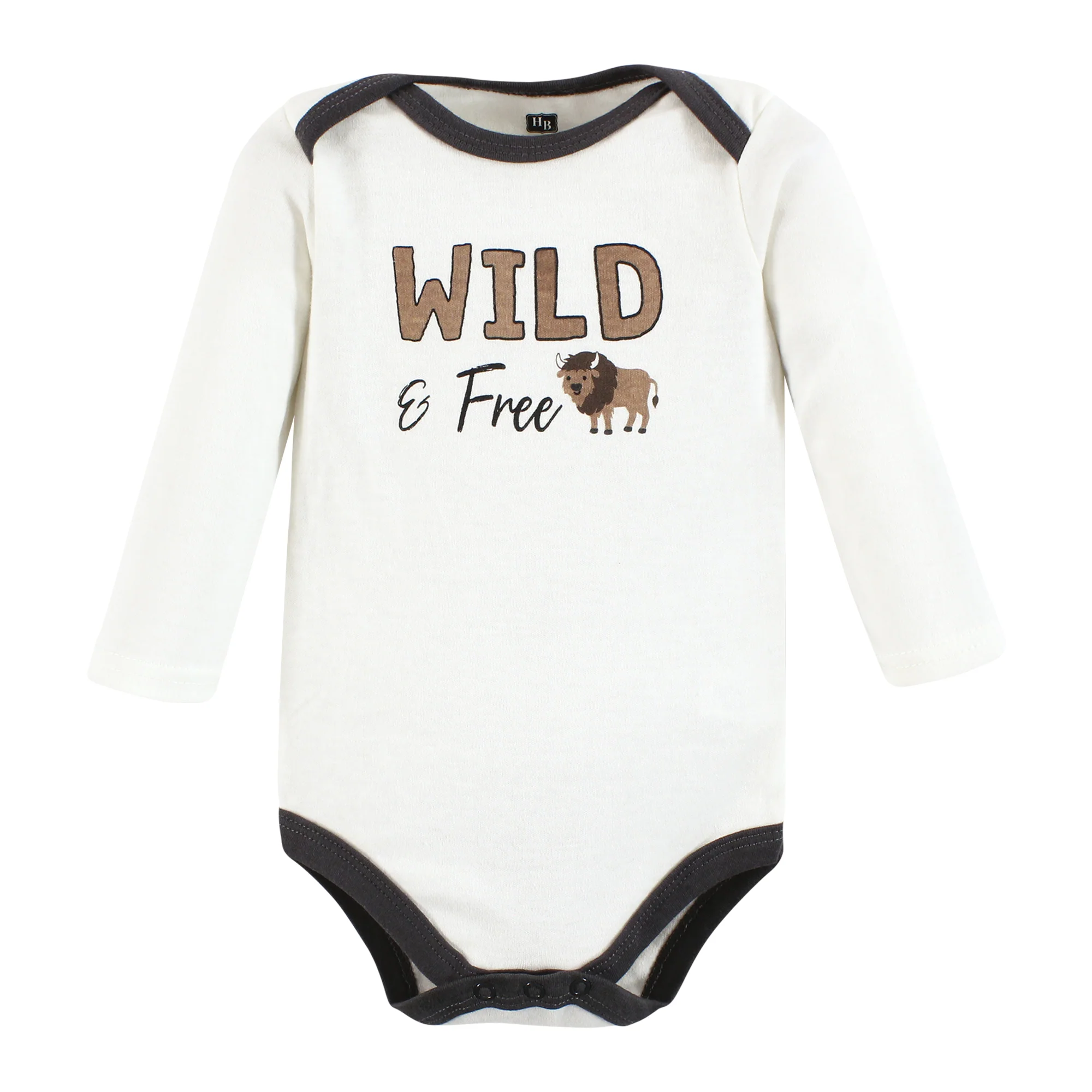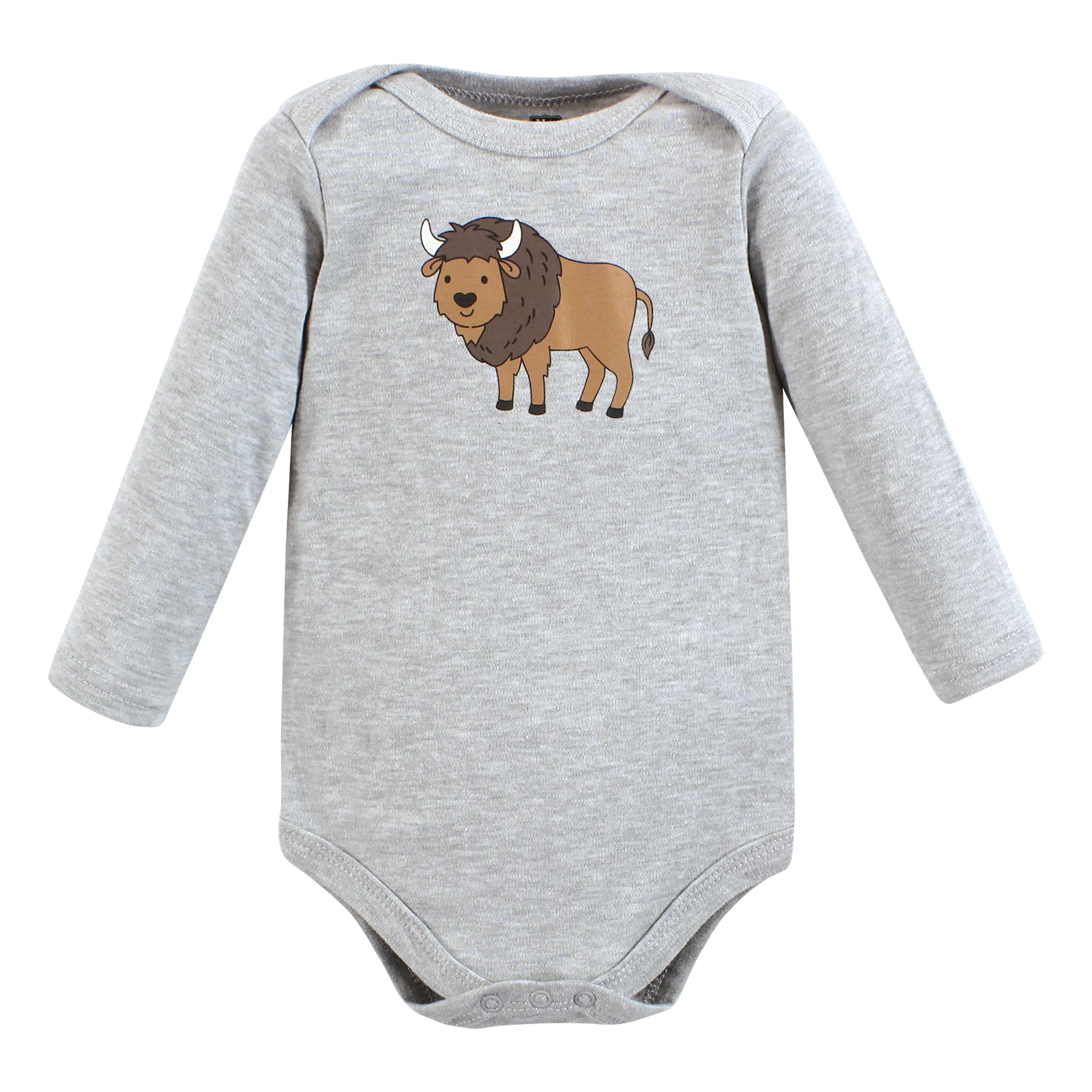 Hudson Baby Infant Boy Cotton Long-Sleeve Bodysuits, Wild Buffalo 7-Pack