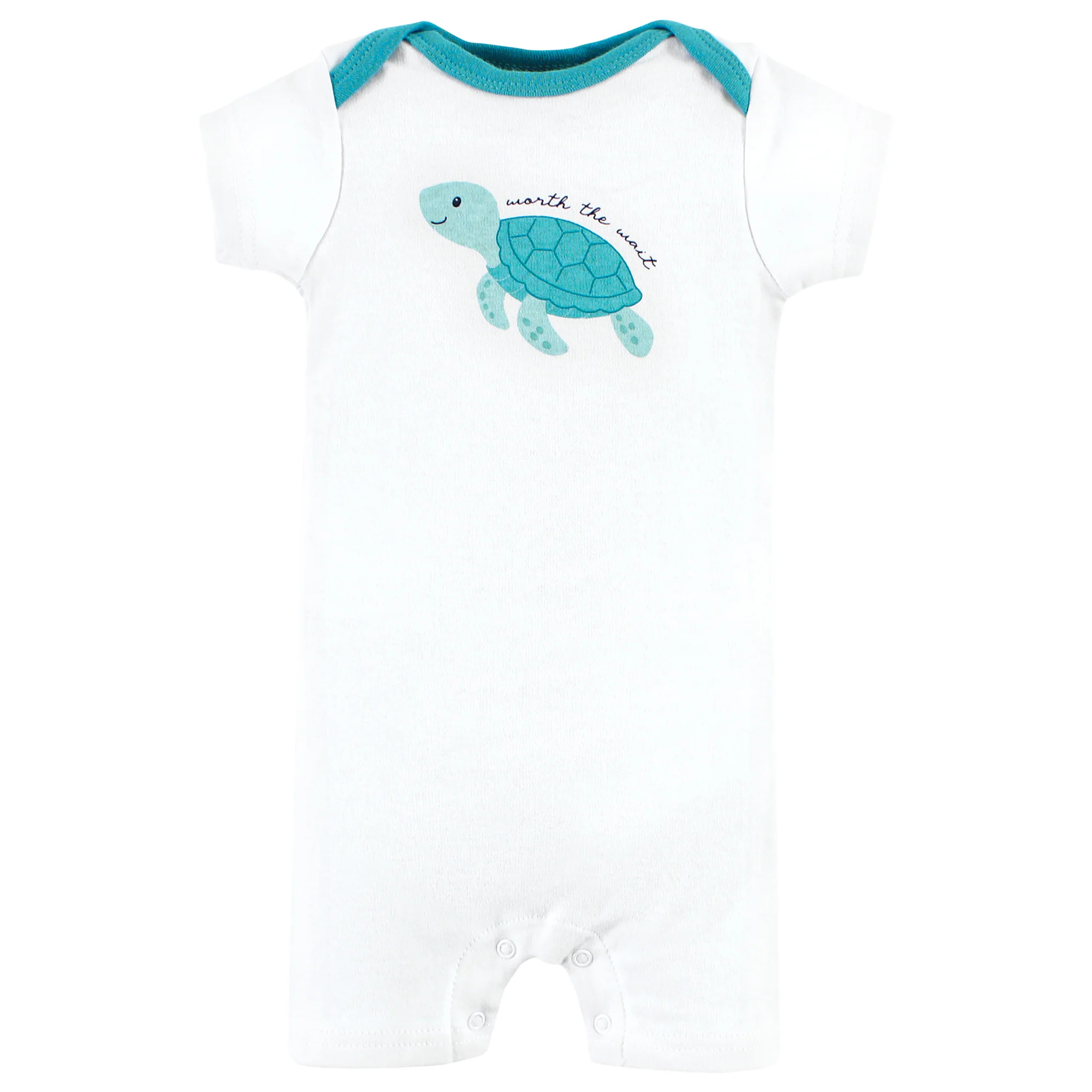 Dress your little one for summertime fun with the Sea Turtle Rompers by Hudson Baby. Perfect for warmer days out, this cute set is crafted of oh-so-soft cotton and features adorable safari animal-inspired prints with short sleeves and snap closures.