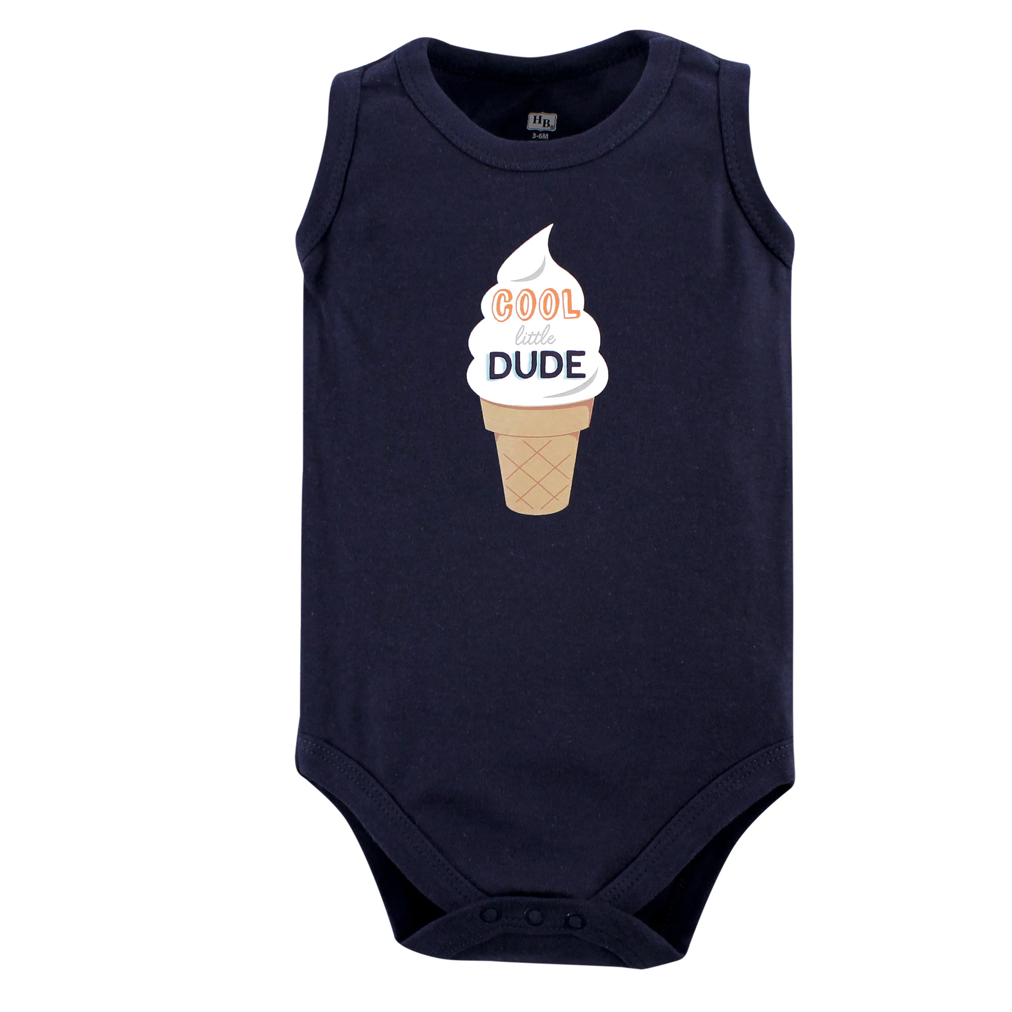 Get your little one ready for fun in the sun with this 5-pack of sleeveless Ice Cream Bodysuits from Hudson Baby. Each all cotton outfit features a vibrant ice cream-themed design, adding a lot of variety to their summer wardrobe options.