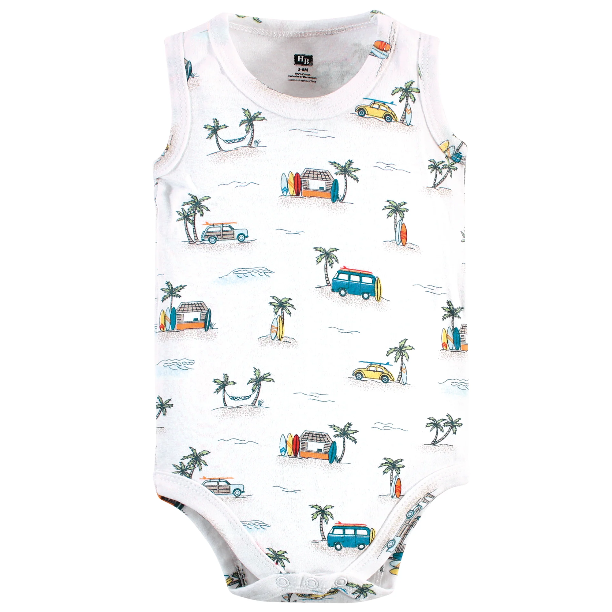 Add adorable options to your little one's summer wardrobe with these Surfer Dude Bodysuits from Hudson Baby. Comfy all-day wear features cute, playful sleeveless designs crafted in soft cotton with lap shoulders and bottom snaps for easy changes.