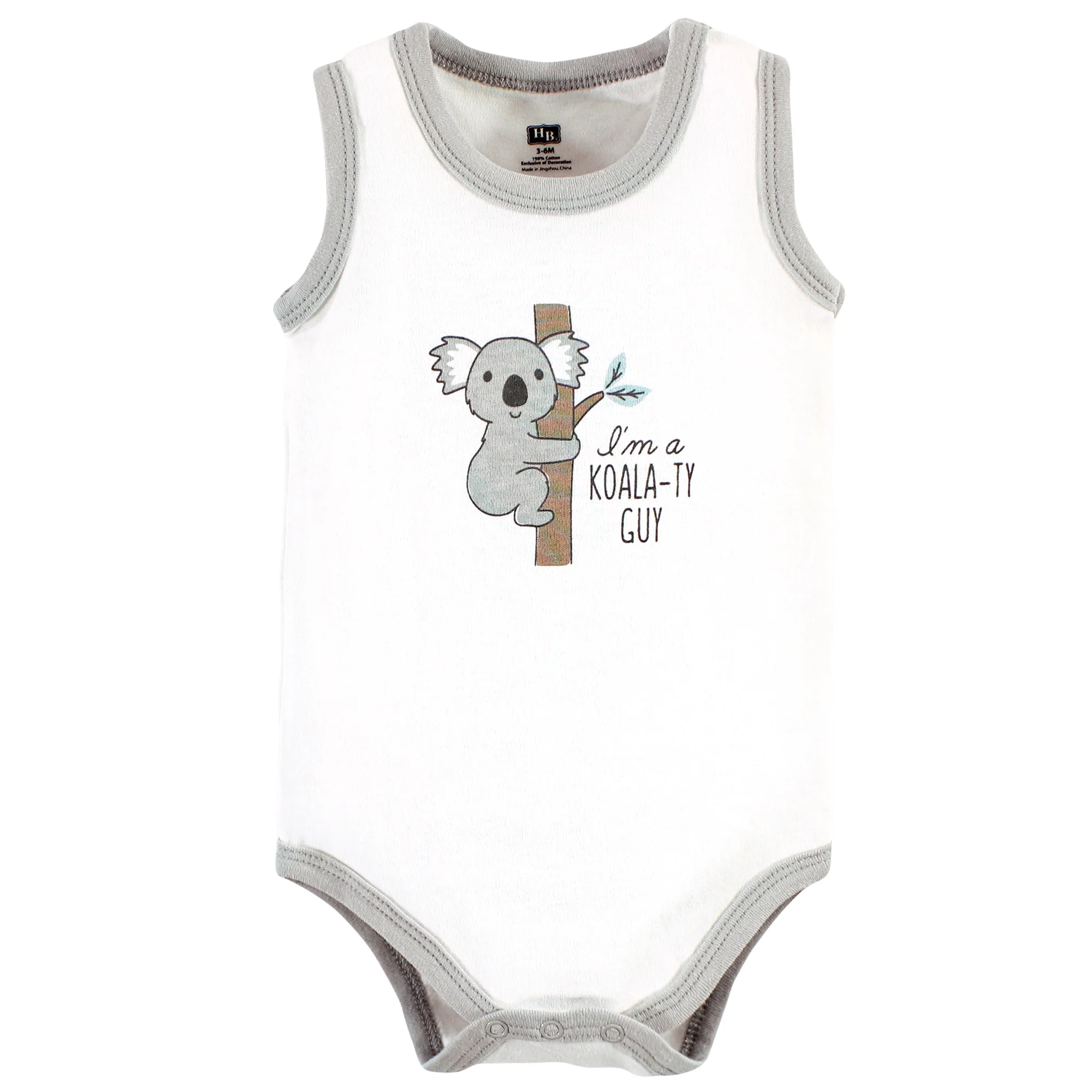 Hudson Baby sleeveless bodysuits are an essential part of baby's wardrobe. Our bodysuits feature adorable prints, embroideries, stripes and solids and provide a comfortable base layer that's great for pairing with pants, shorts, or even wearing under outfits. Our bodysuits are comfortable and cozy for all-day, everyday wear for your little one. Hudson Baby Infant Boy Cotton Sleeveless Bodysuits, Zoo Animals is the perfect essentials set for your little one.
