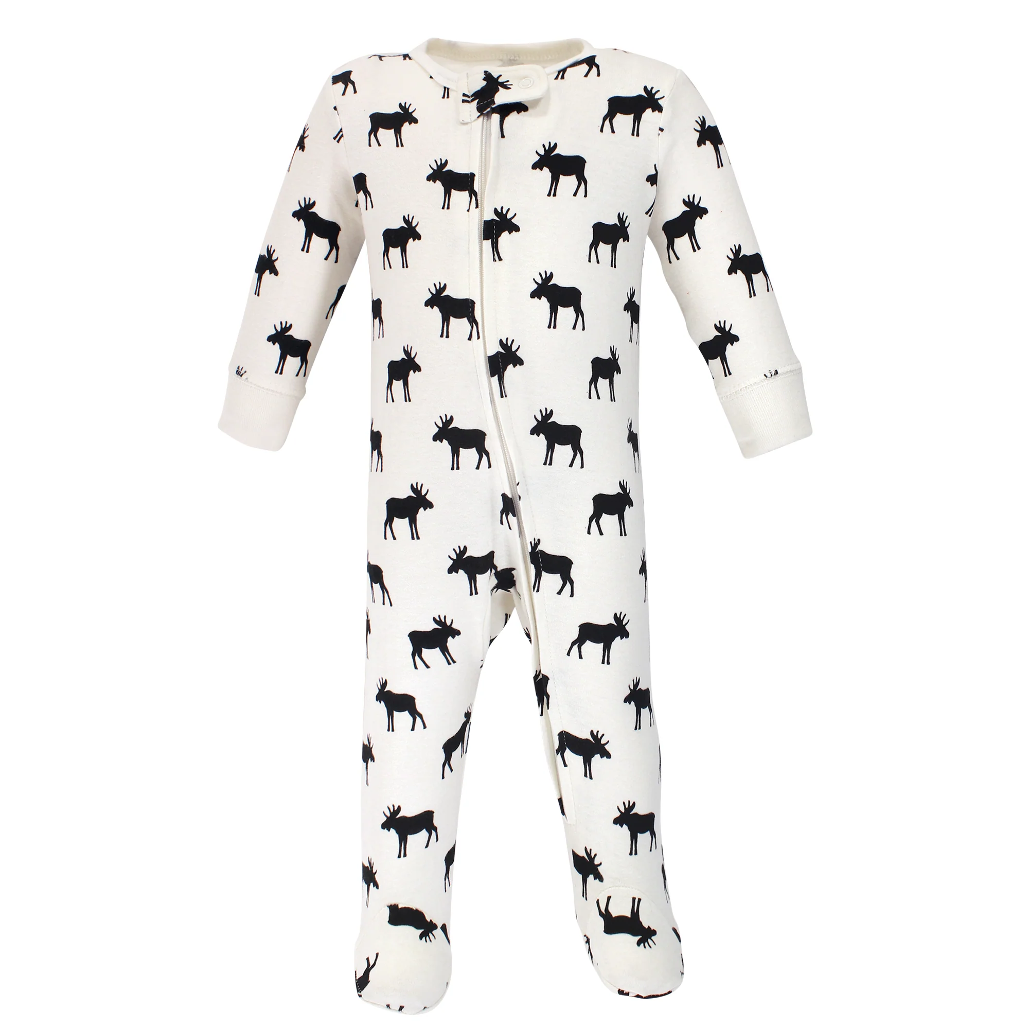 - 1 footie in white with black moose silhouettes