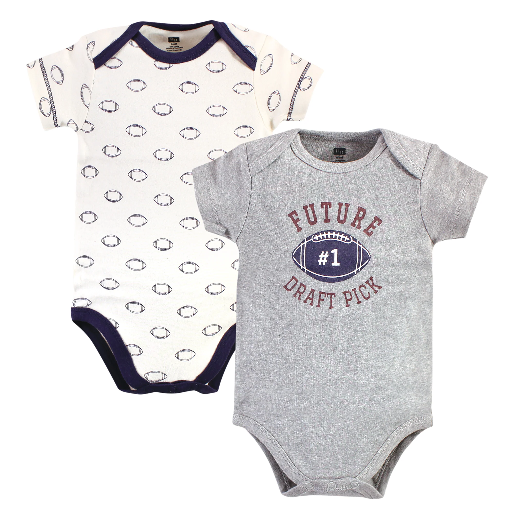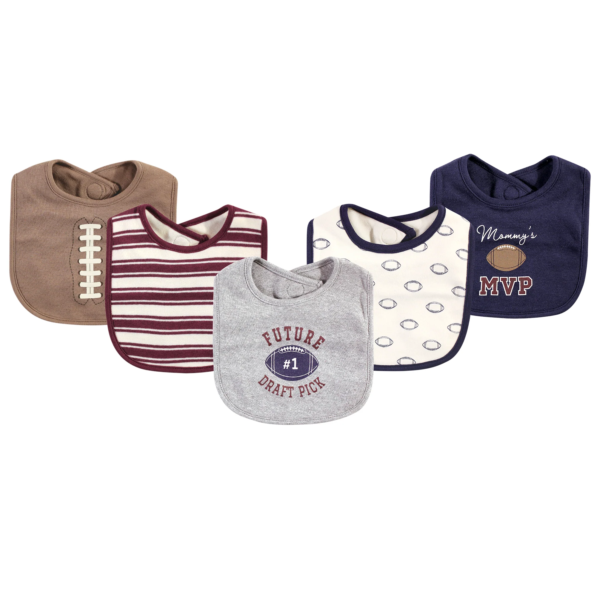 The Hudson Baby Football Layette Gift Set makes the perfect baby shower present. Gentle on baby's sensitive skin, this stylish cotton set features bodysuits, pants, bibs, caps, burp cloths, washcloths, scratch mittens, and a laundry bag.