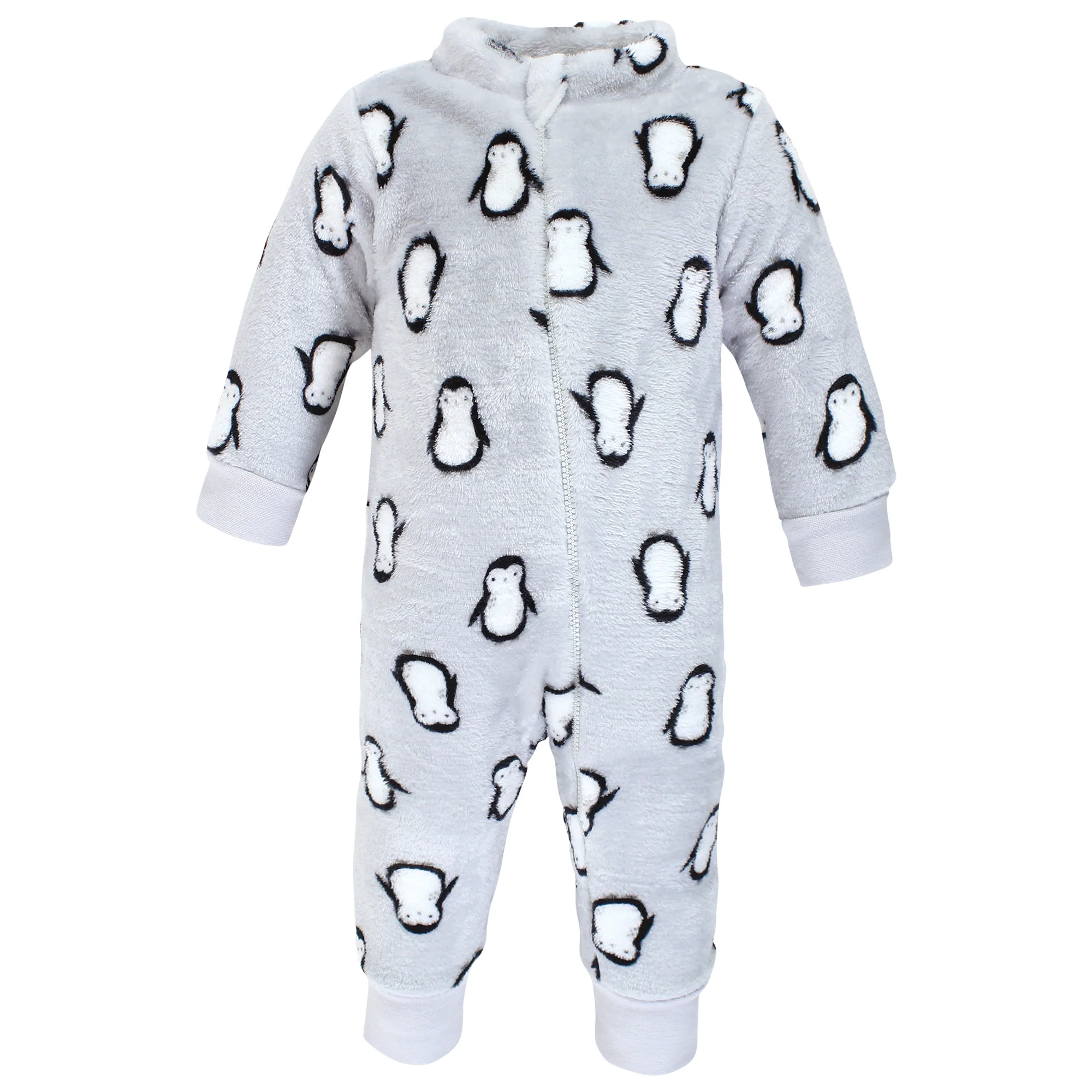 The Grey Penguin Jumpsuits from Hudson Baby outfit your little one in cozy cuteness. Fabricated with flexible polyester, each jumpsuit in this pack features a seamless zip and snap closure for an easier nighttime routine.