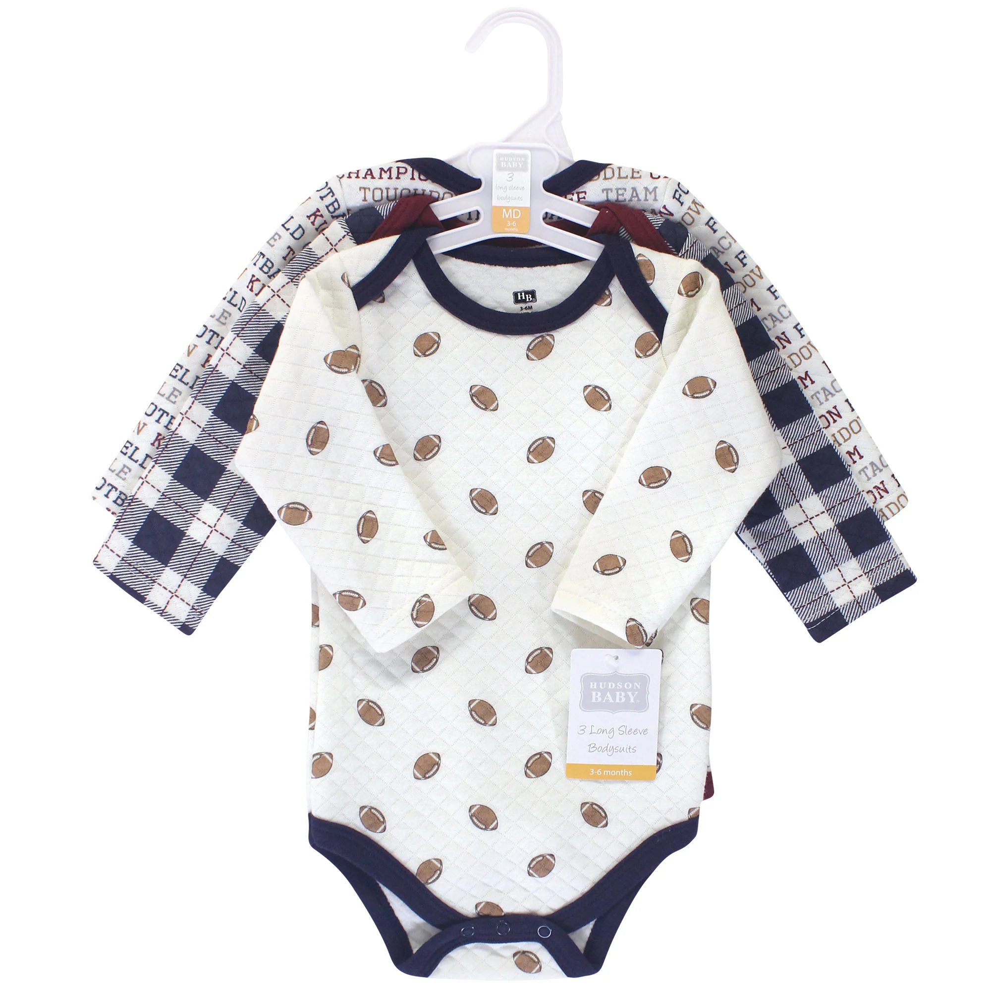 A warm choice for winter dressing, these Quilted Bodysuits from Hudson Baby are supremely soft and oh-so adorable. A mix of patterns like plaid, footballs, and sports terms bring sporty style to your little one's wardrobe.