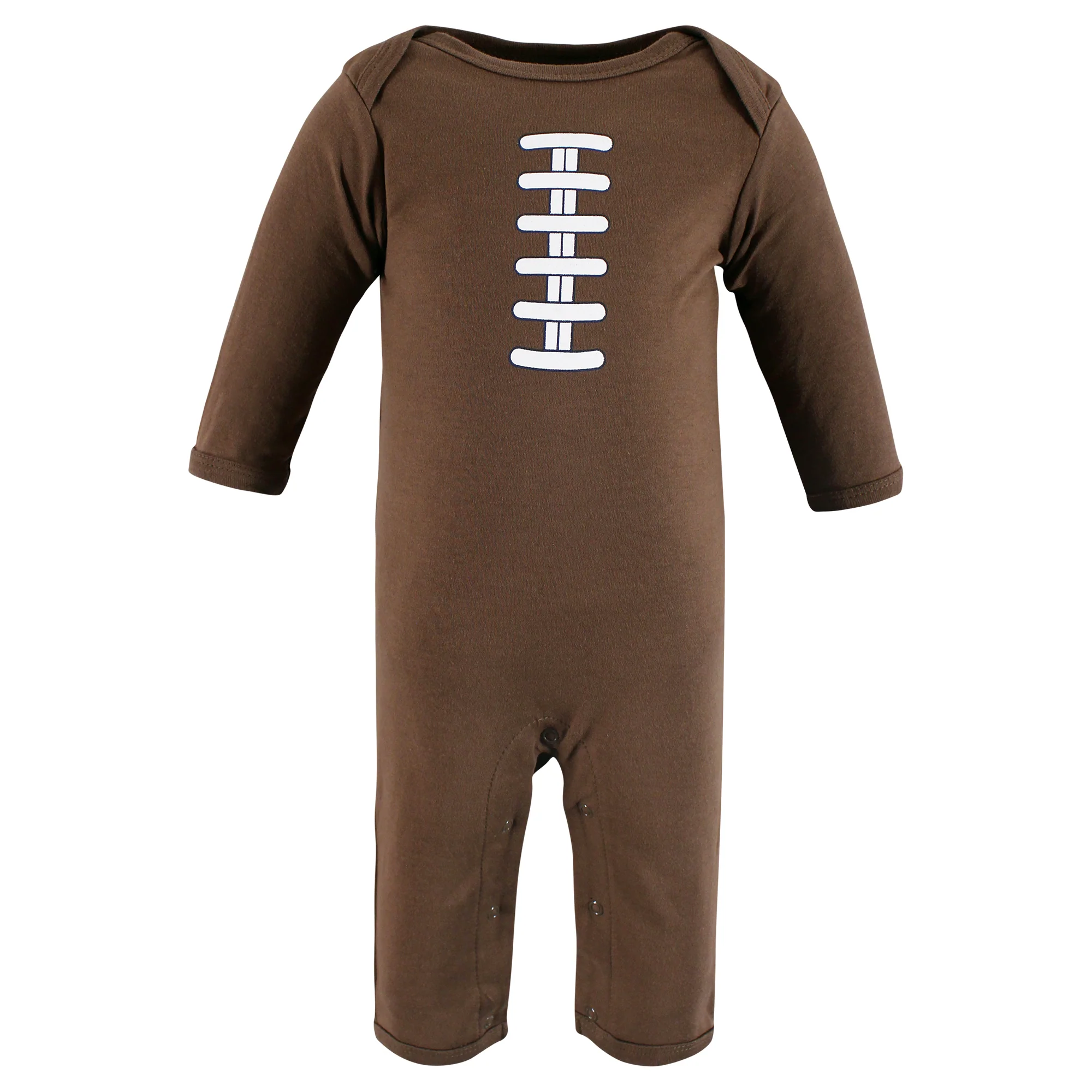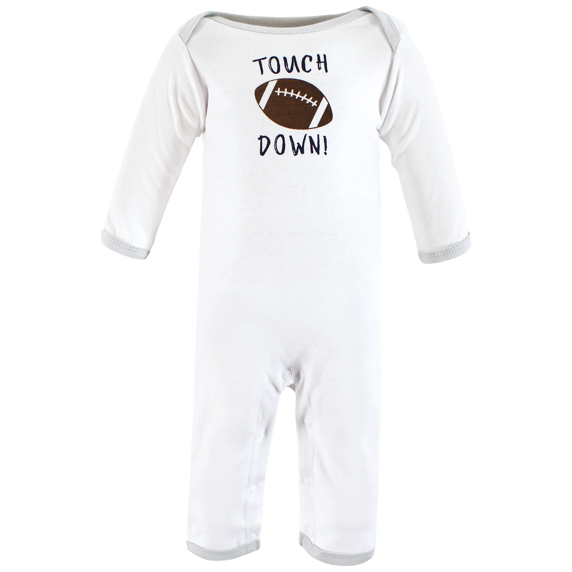 Hudson Baby Infant Boys Cotton Coveralls, Touch Down, 3-Pack