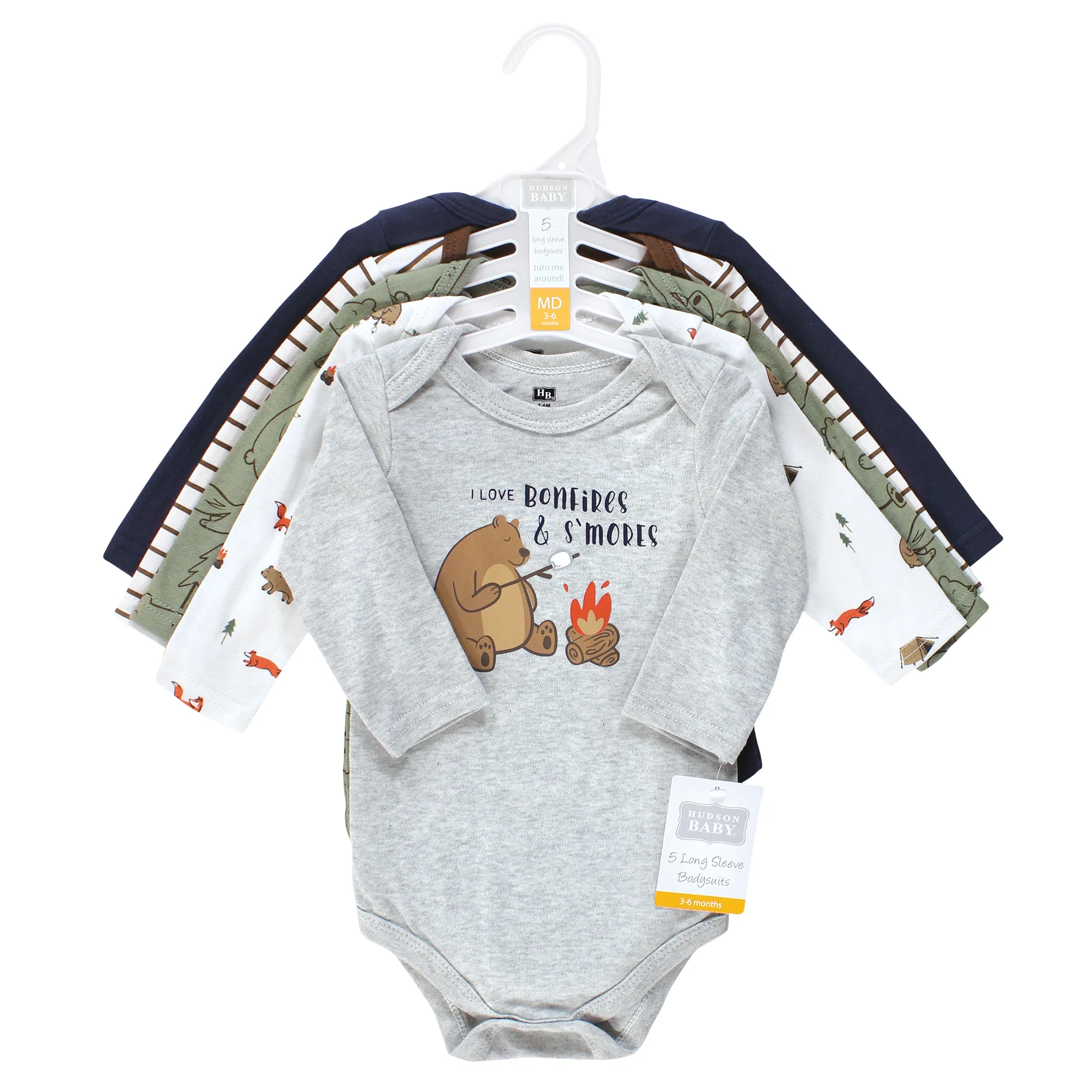 Hudson Baby Infant Boys Cotton Long-Sleeve Bodysuits, Camping Animals