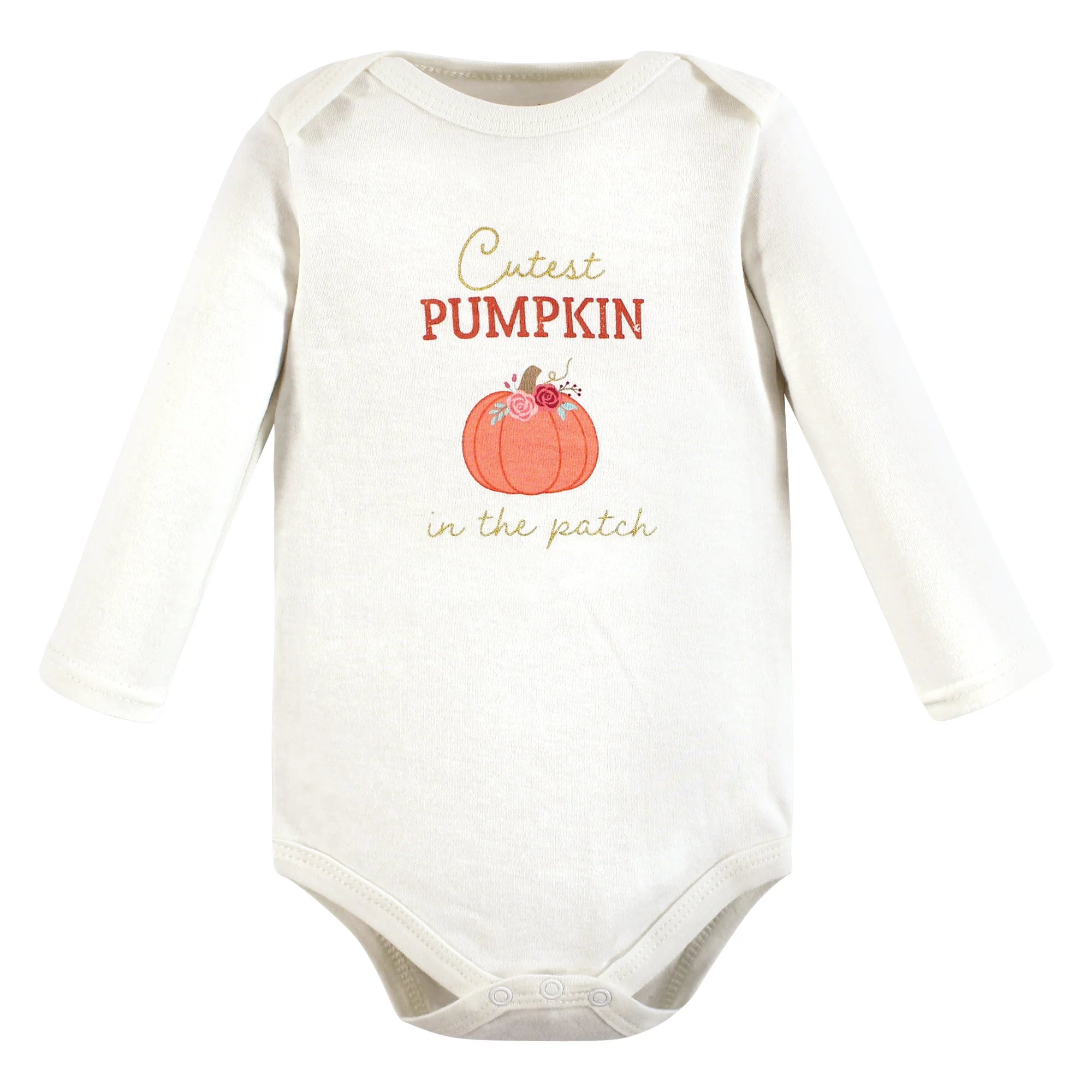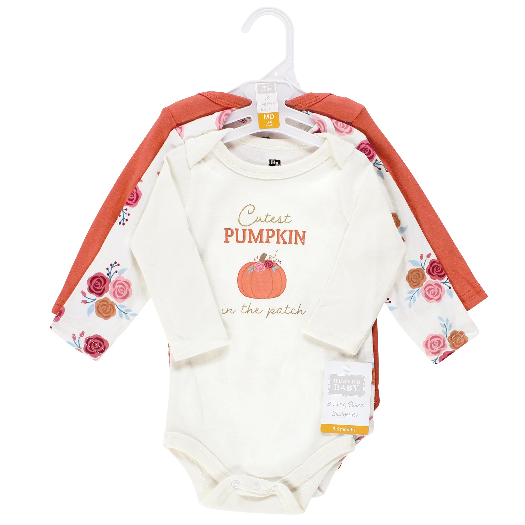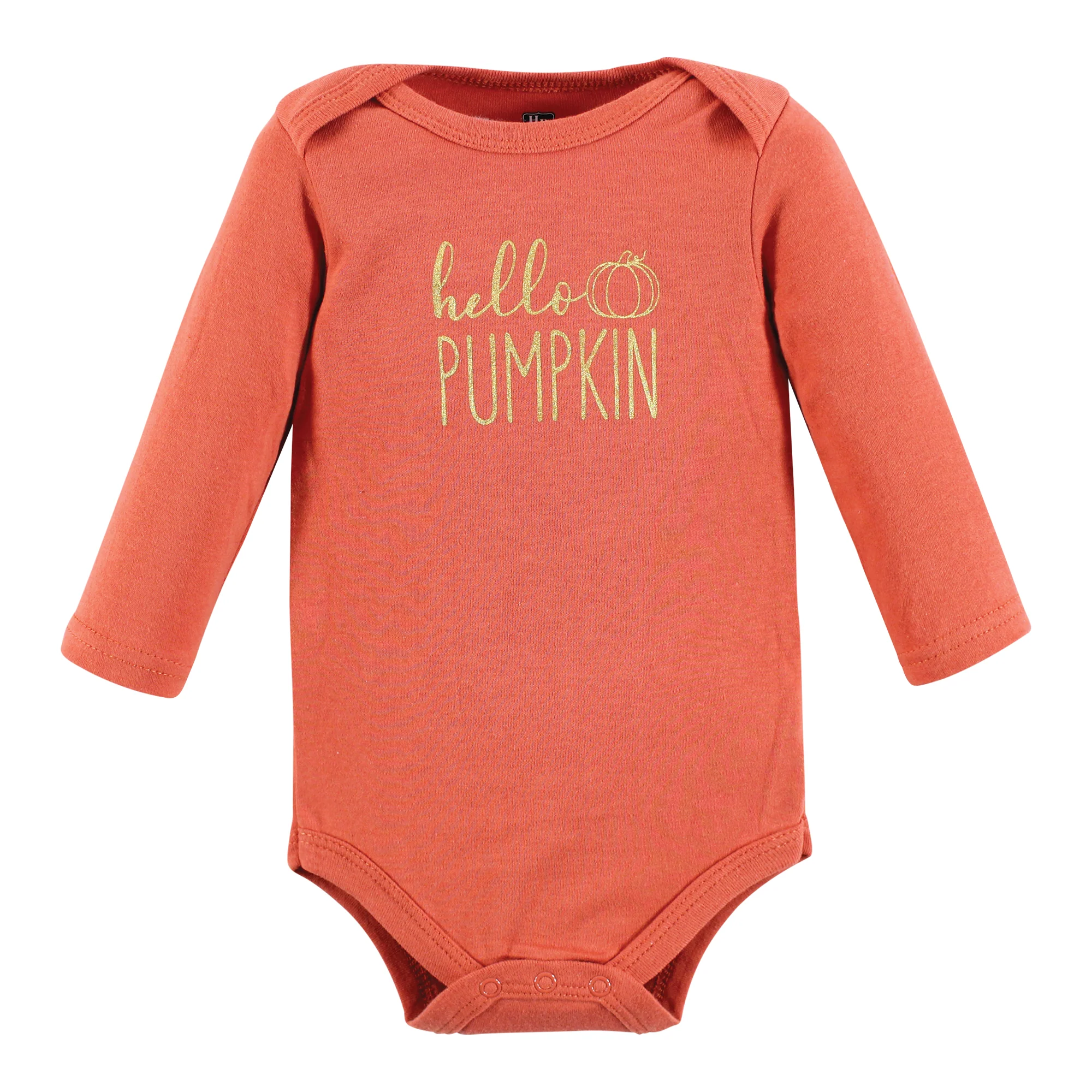 Add adorable options to your little one's wardrobe with these cozy Cutest Pumpkin Long Sleeve Bodysuits from Hudson Baby. Comfy all-day wear features cute, playful designs made of soft cotton with lap shoulders and bottom snaps for easy changes.