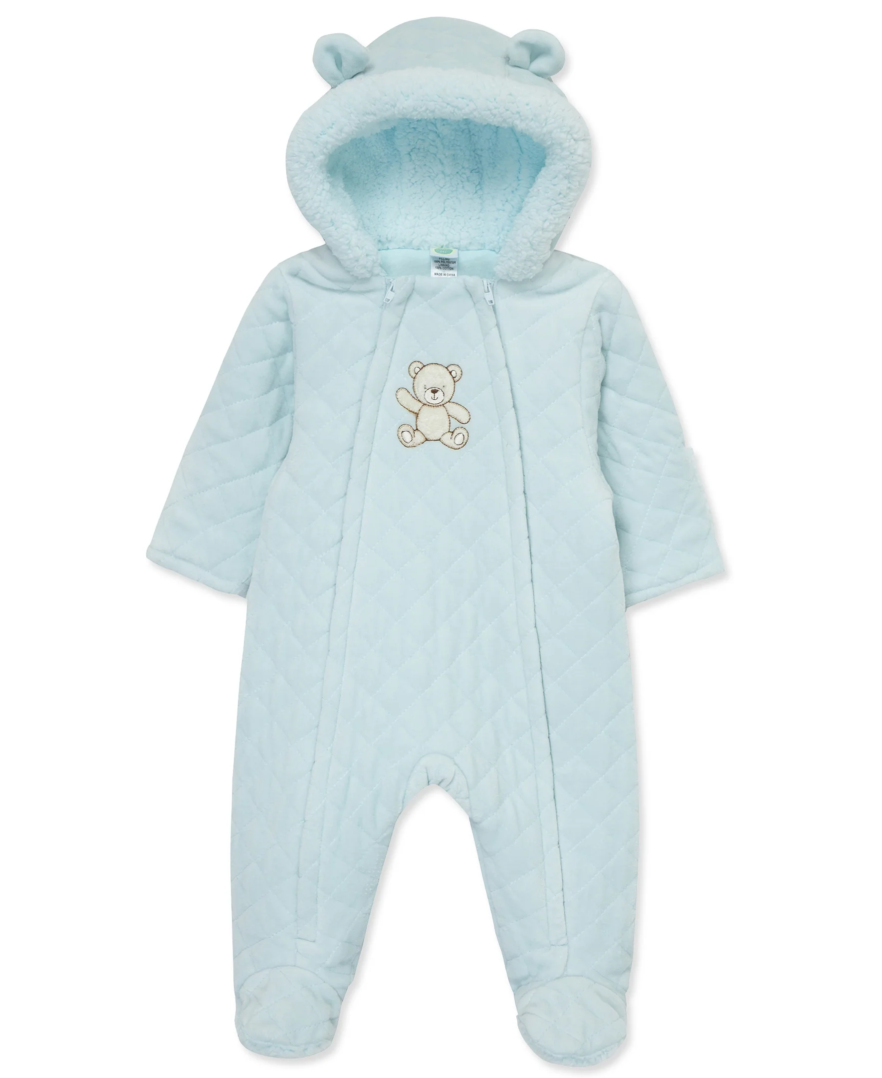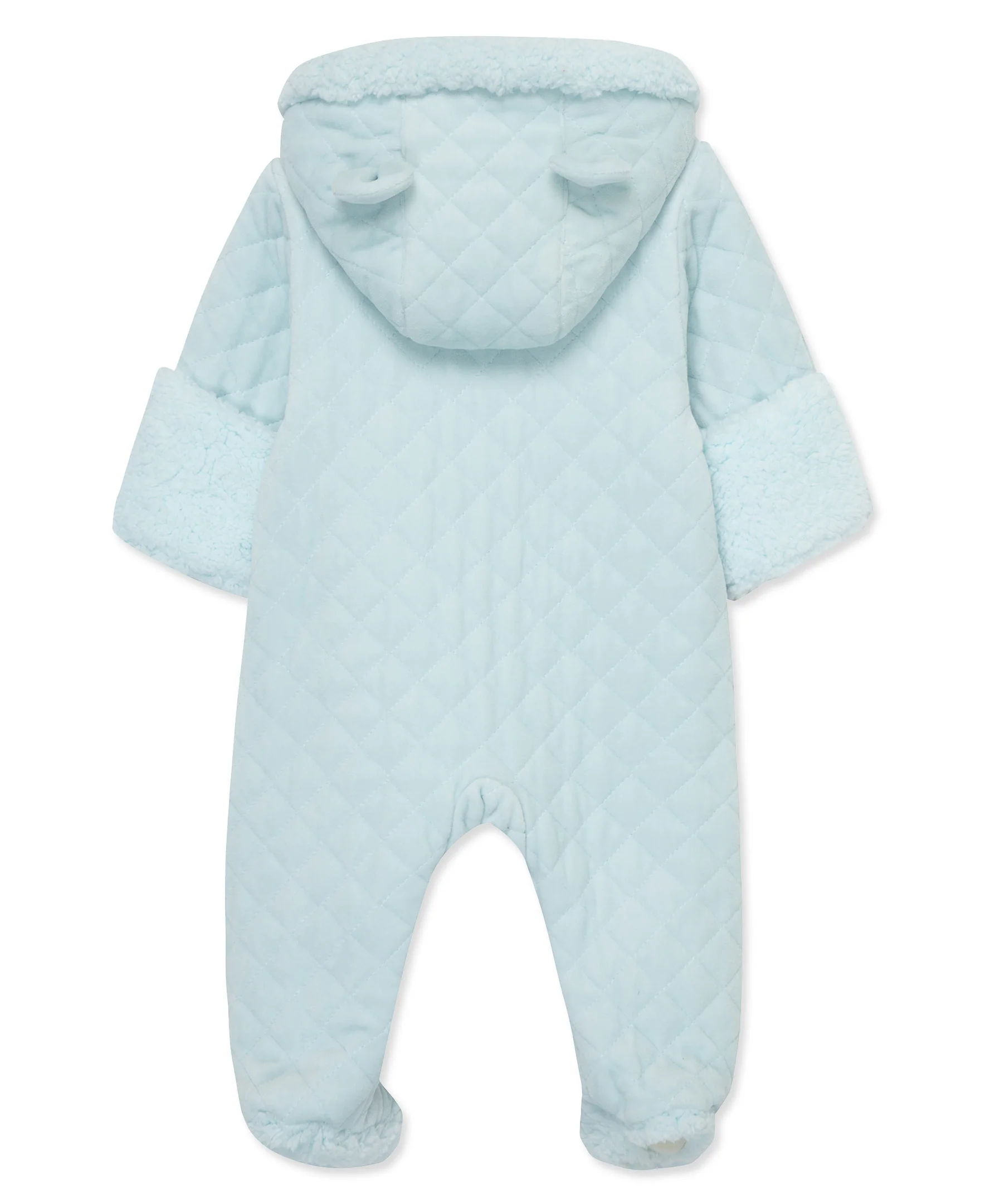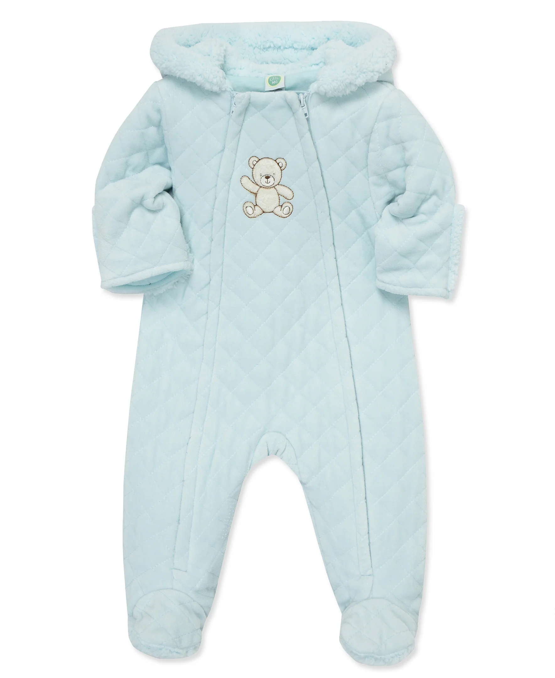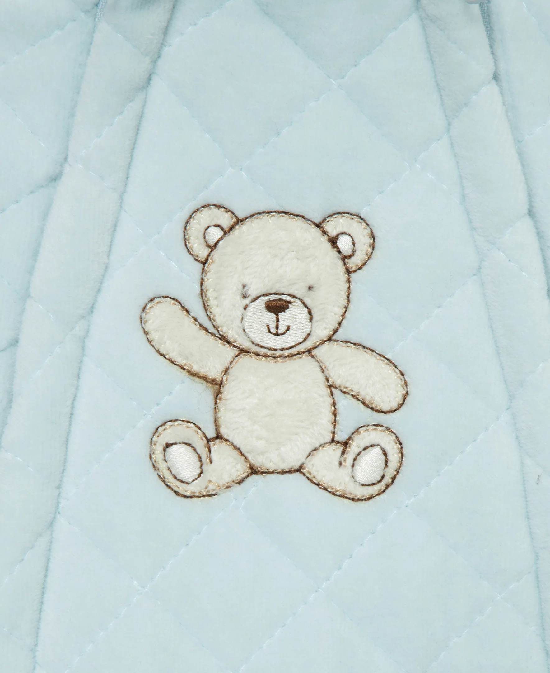 Our newborn baby boys' quilted velour pram keeps baby bear extra-warm and cozy when heading outdoors.