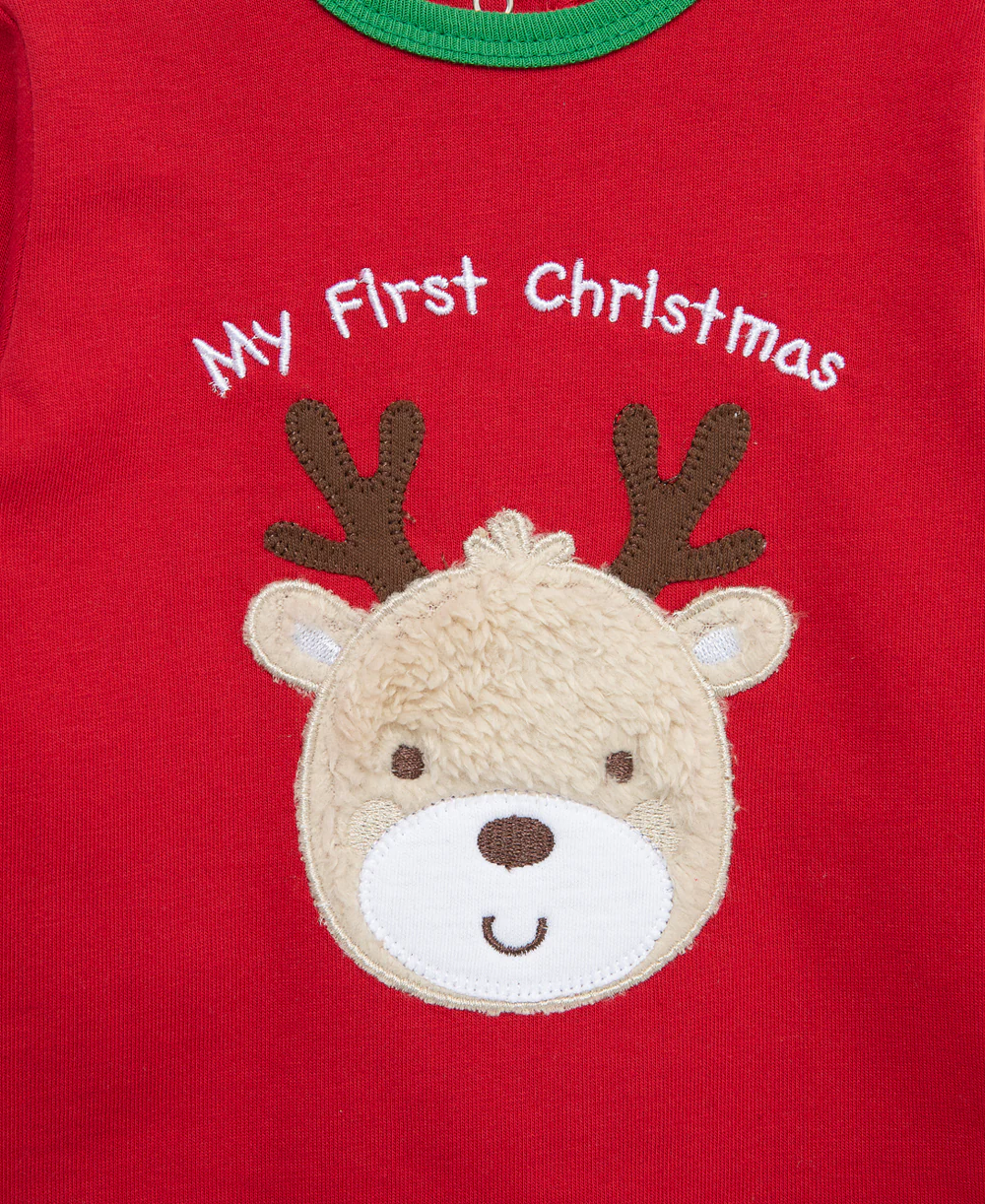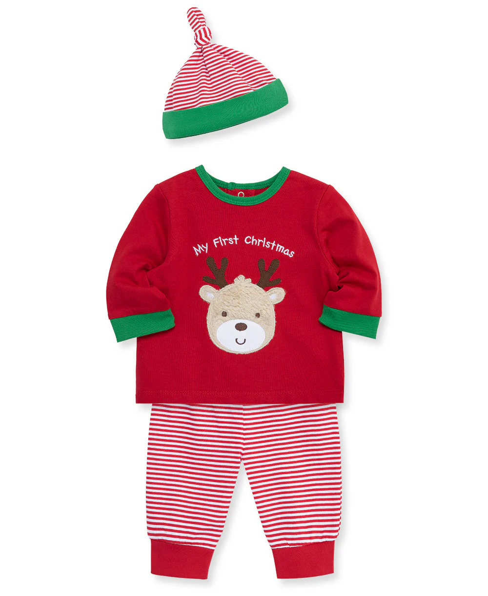 A newborn babys' cozy holiday jogger set featuring a reindeer.