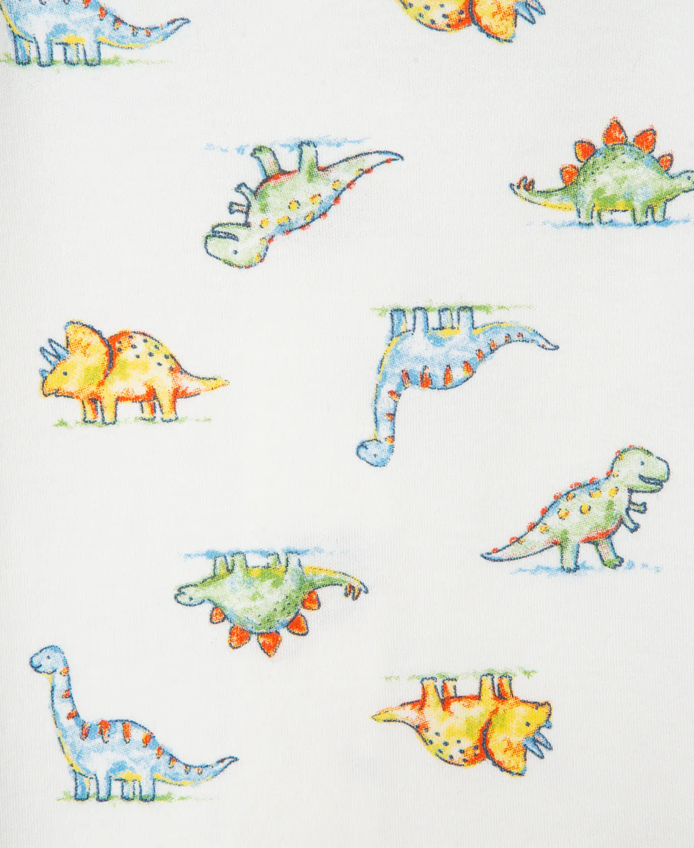 Playful spikes top the warm hat paired with a newborn baby boys' pure cotton zip footie crawling with tiny dinos.
