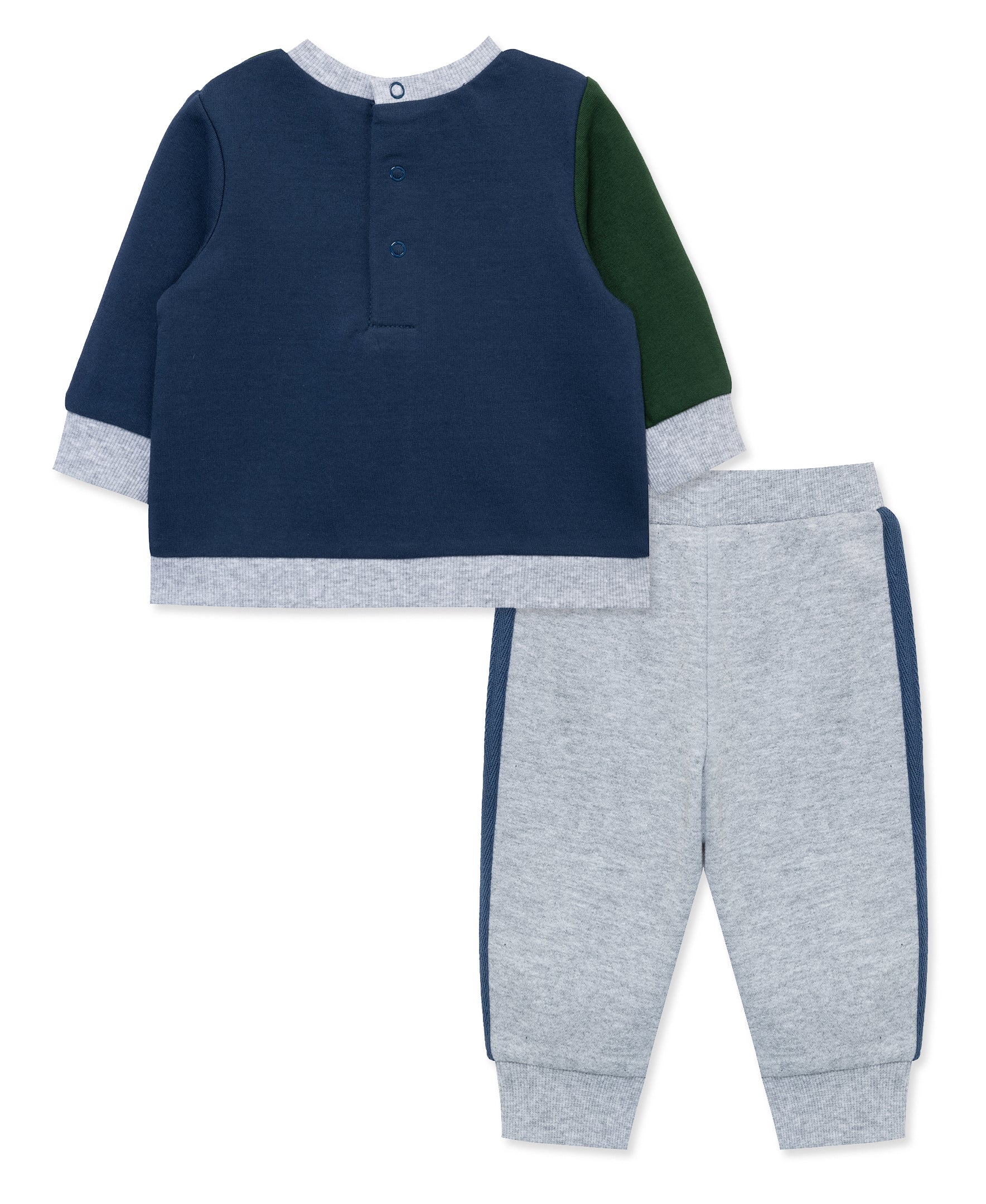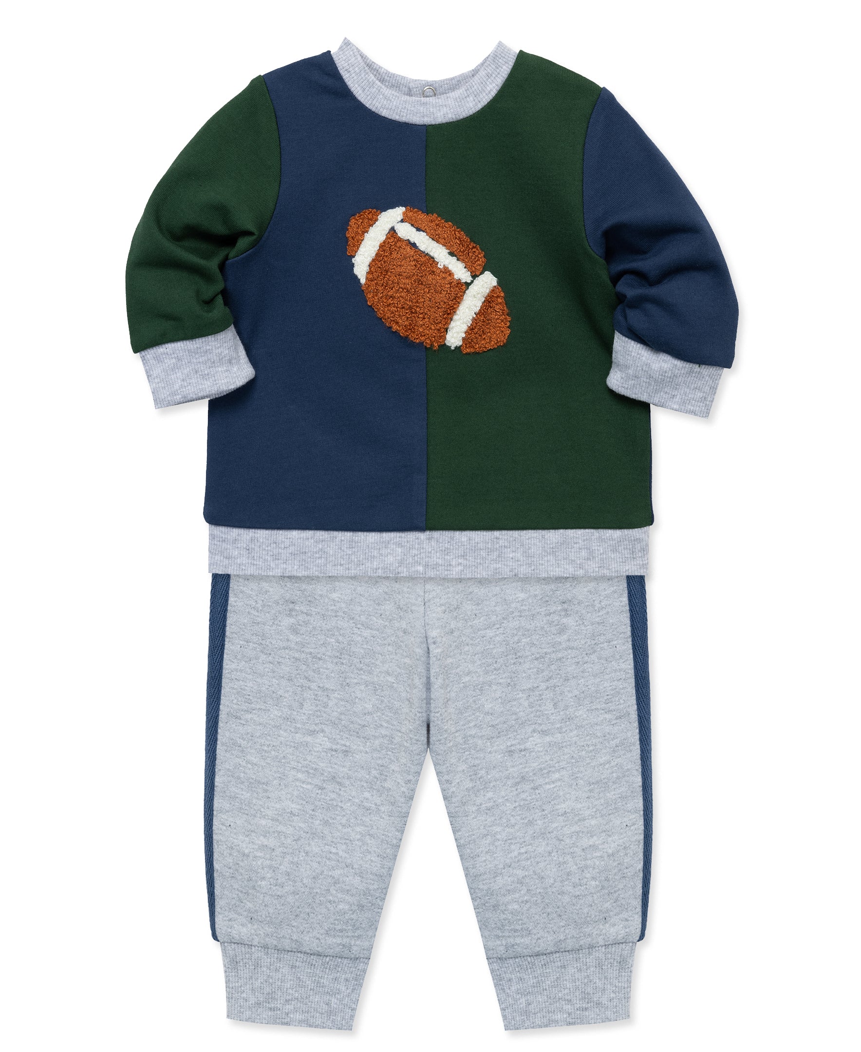 He will be ready for game day in our baby boys' active set. The set includes pull on pants and a colorblock sweatshirt featuring a football.