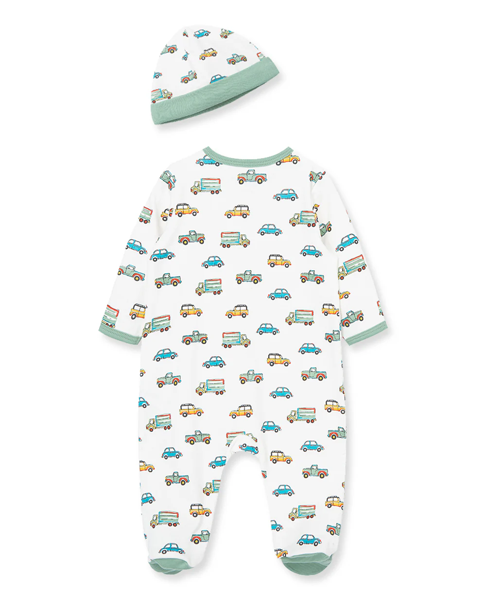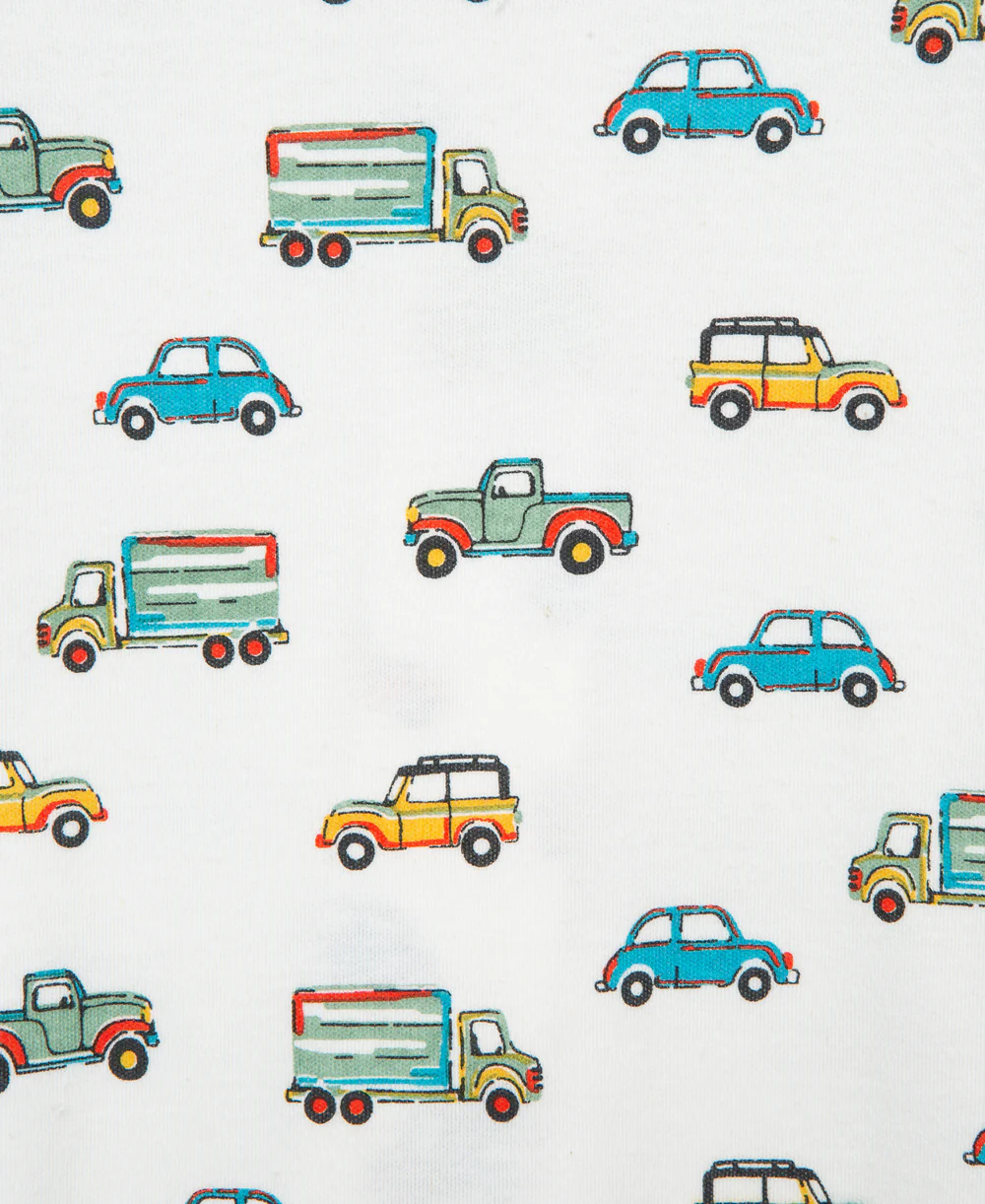 Your baby boy will be cute and comfy in this car theme sleeper. The adorable one-piece footie is perfect for your future little on the go babe. Outfit is 100% cotton, and has front zipper closure from neck to feet for easy dressing. Long sleeves are perfect for extra comfort.