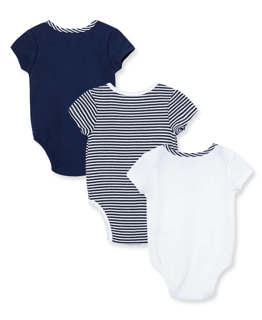 Set sail for comfort with this adorable Sailboats Bodysuits from Little Me. Made of cotton, these cute bodysuits each feature a different design, including a striped one, a blue one, and one with a fun sailboat design.