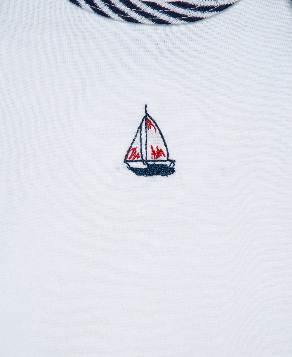- White bodysuit with sailboat print