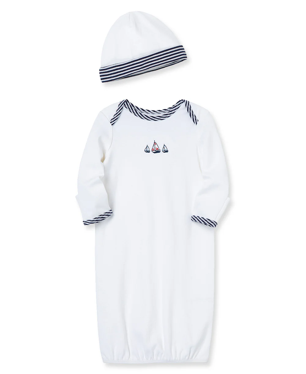 - Let your little one gently sway in the oceans of life with this comfortable Sailboats Gown and Hat Set from Little Me