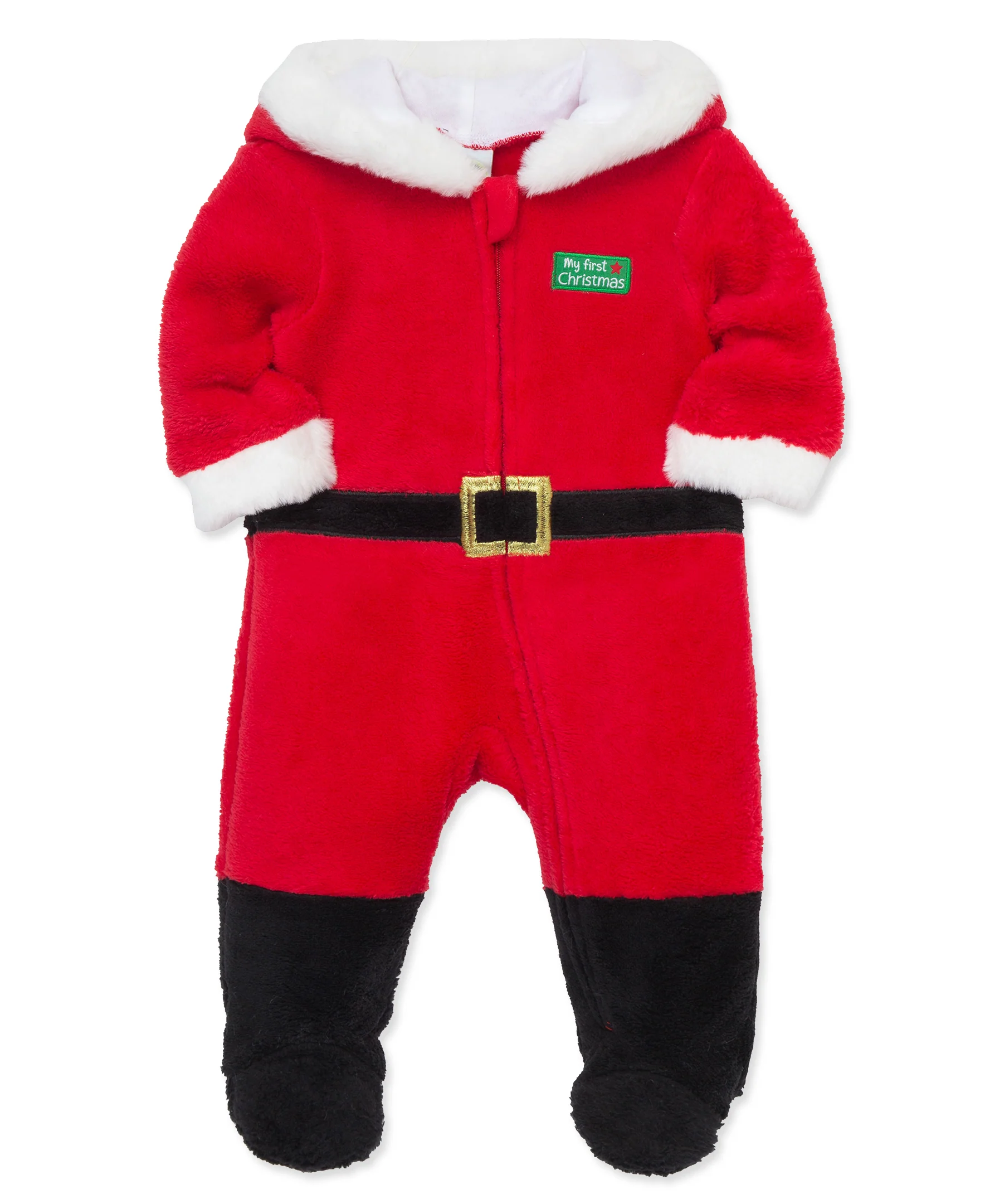 An adorable holiday velour footie that looks like a Santa suit for your baby this season.