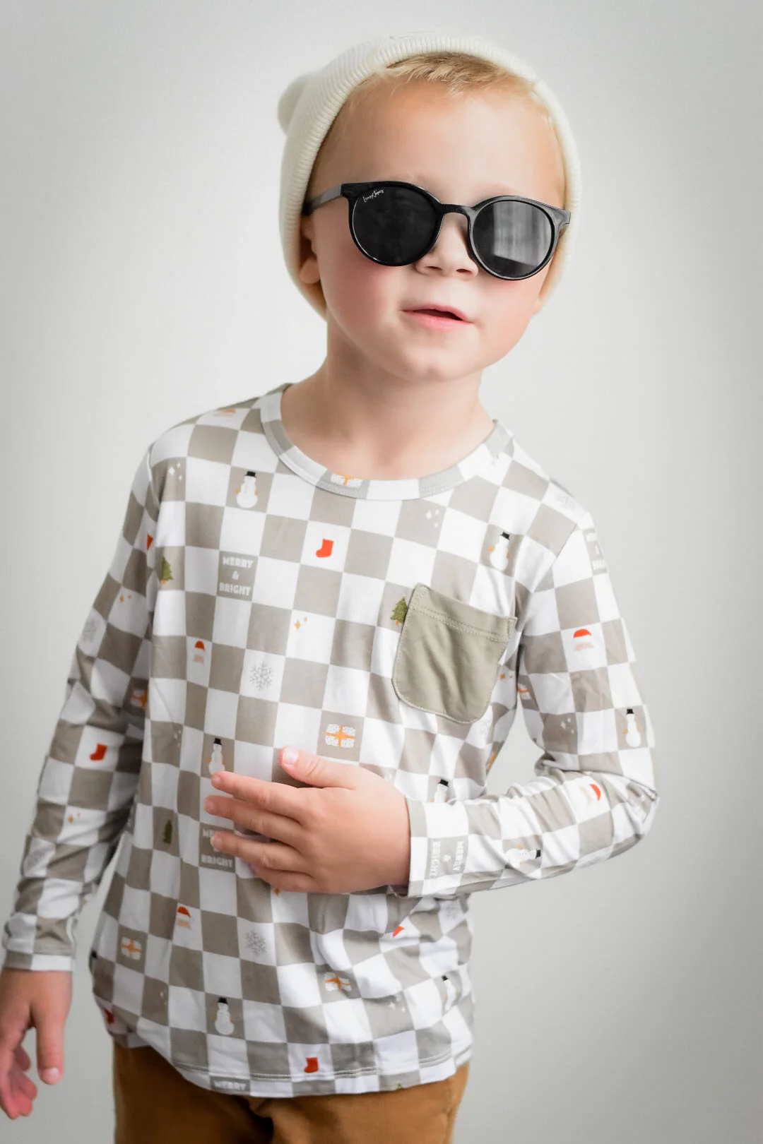 'Tis the season! Get merry & bright this year with our Merry & Bright Checks Dream Pocket Tee! Super soft and comfortable Bamboo material looks ever so festive with the cool Christmas design. Plus, the long sleeve pocket can carry your wildest holiday dreams! Ho-Ho-Hope you find what you're after!