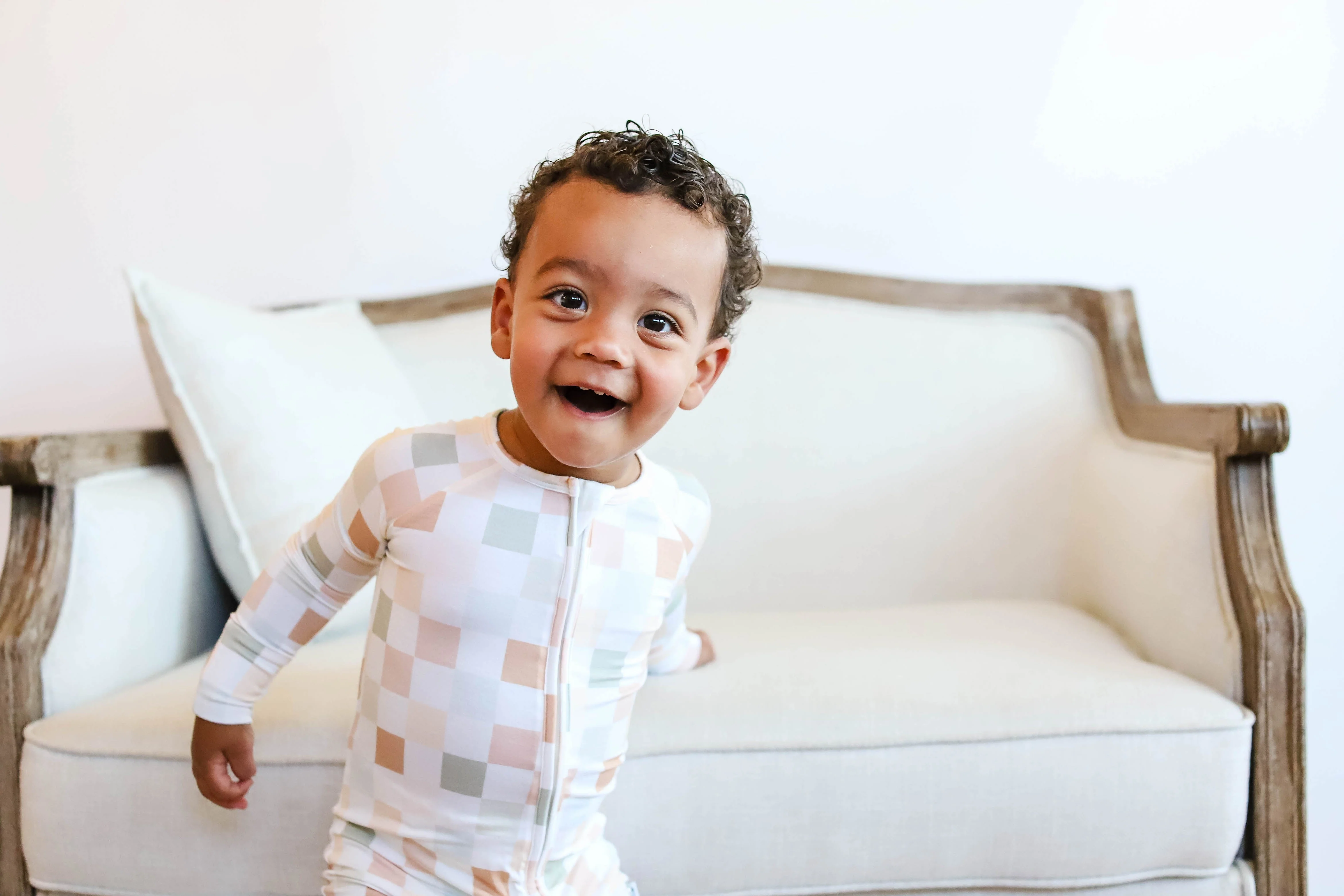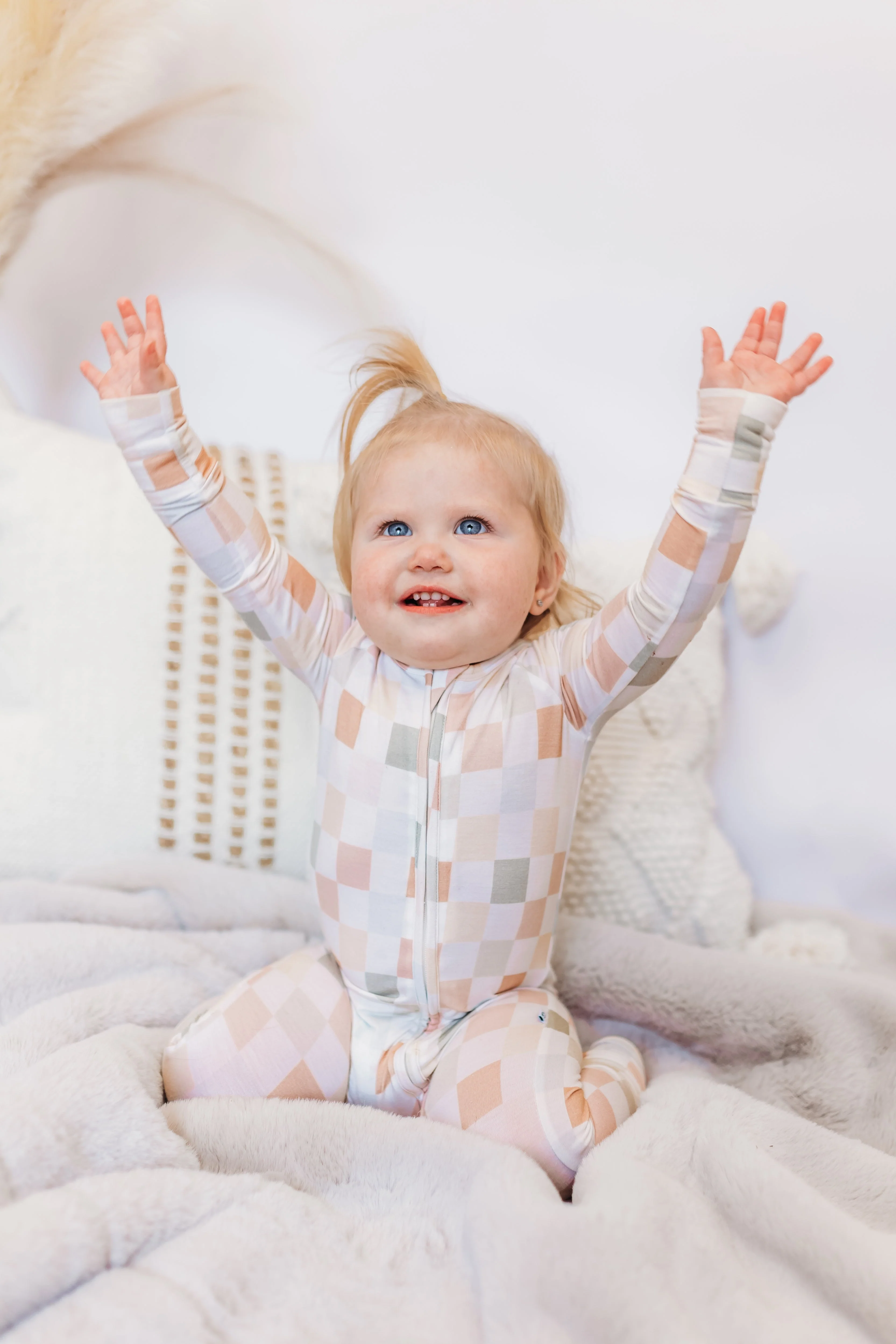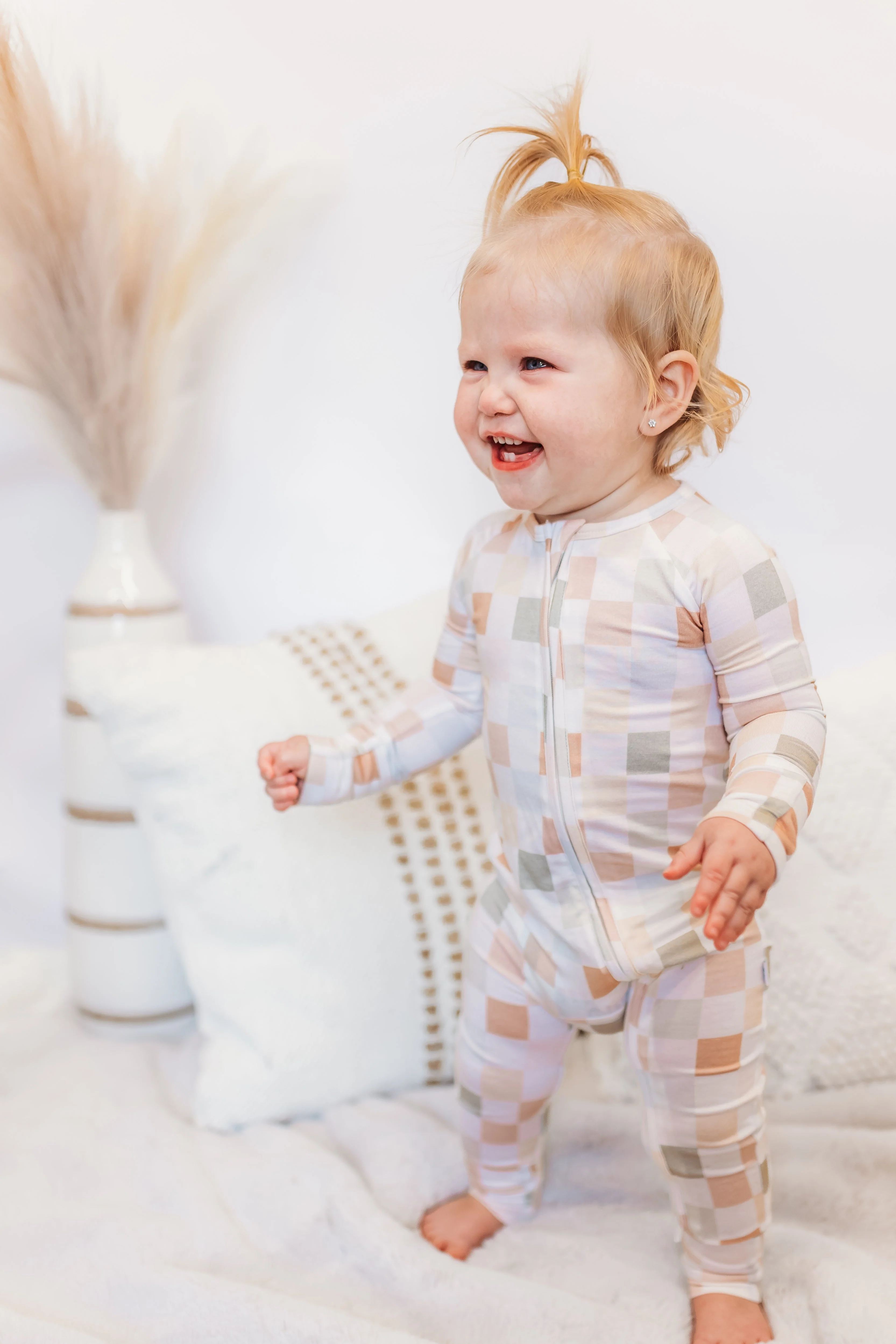 This Muted Checkers Dream Romper will have you dreaming sweet dreams of comfort and style! With its long sleeve romper, muted checkers print, and bamboo material, you'll be sure to stay cozy while looking chic. Now that's a checkmate for any occasion!